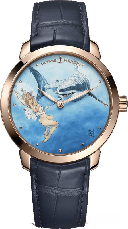 Часы Ulysse Nardin Classic Manara представлены в корпусе из розового золота 18к размером 40 мм и водонепроницаемостью 30 м. Внутри корпуса установлен автоматический механизм, Калибр UN-320, обладающий запасом хода 48 часов. На циферблате с рисунком эмалью М.Манара отображаются часы, минуты. Часы комплектуются ремешком из кожи аллигатора с вставкой из розового золота 18к. Серия ограничена - 10 шт.