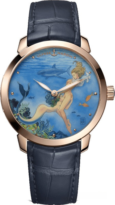 Часы Ulysse Nardin Classic Manara представлены в корпусе из розового золота 18к размером 40 мм и водонепроницаемостью 30 м. Внутри корпуса установлен автоматический механизм, Калибр UN-320, обладающий запасом хода 48 часов. На циферблате с рисунком эмалью М.Манара отображаются часы, минуты. Часы комплектуются ремешком из кожи аллигатора с вставкой из розового золота 18к. Серия ограничена - 10 шт.