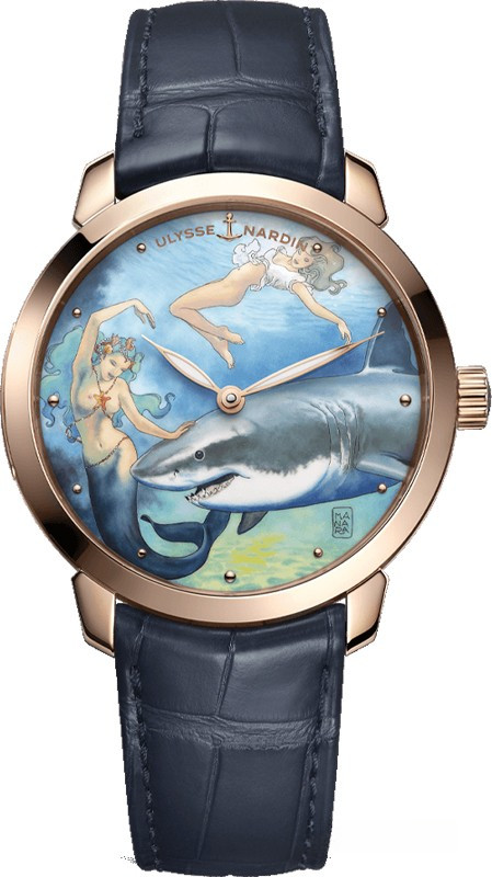 Часы Ulysse Nardin Classic Manara представлены в корпусе из розового золота 18к размером 40 мм и водонепроницаемостью 30 м. Внутри корпуса установлен автоматический механизм, Калибр UN-320, обладающий запасом хода 48 часов. На циферблате с рисунком эмалью М.Манара отображаются часы, минуты. Часы комплектуются ремешком из кожи аллигатора с вставкой из розового золота 18к. Серия ограничена - 10 шт.