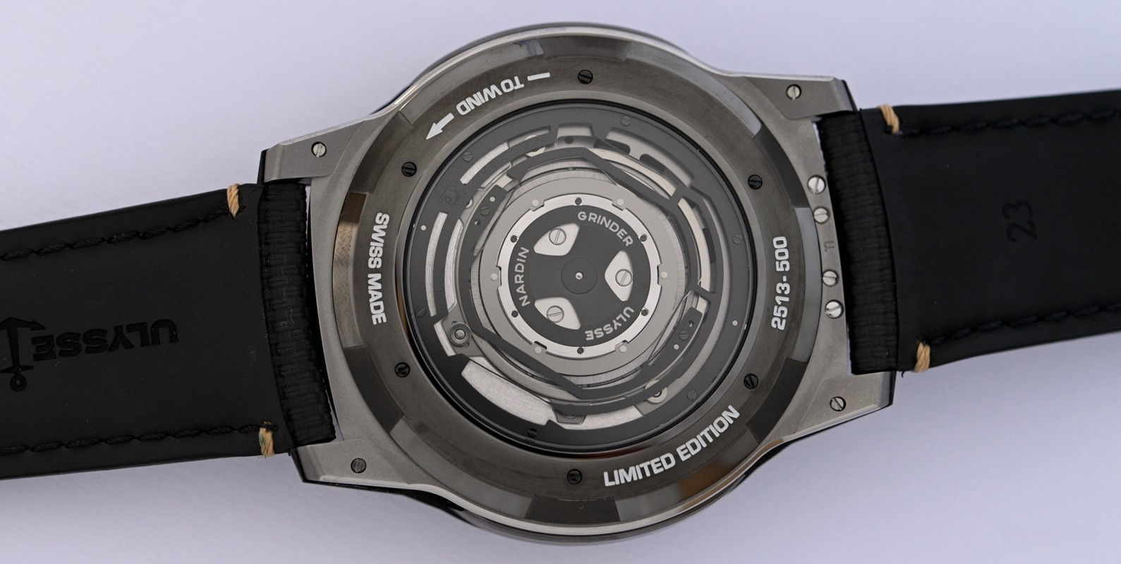 Часы Ulysse Nardin Freak S представлены в корпусе из титана с покрытием DLC размером 45 мм водонепроницаемостью 30 метров. Внутри корпуса установлен механизм с ручным заводом, Калибр UN-251, обладающий запасом хода 72 часа. На серебристом циферблате отображаются часы, минуты. Часы комплектуются текстильным ремешком из с титановой застежкой. Серия ограничена - 99 шт.