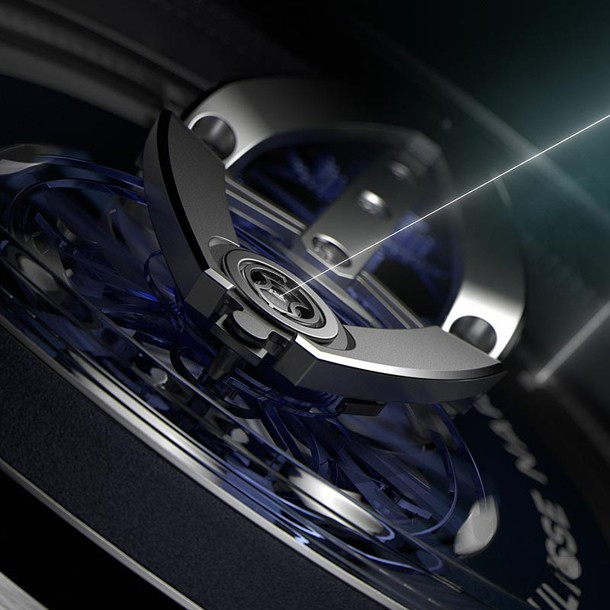 Представляем первые часы коллекции Freak с автоподзаводом: модель Freak Vision, уникальный экземпляр, где использованы новаторские идеи, увидевшие свет в концепте Ulysse Nardin InnoVision 2, представленном на выставке SIHH в Женеве в 2017 году. Первая из них – балансовое колесо из сверхлегкого кремния со стабилизирующими лопастями, выполненными из сплава никеля, создающими стабилизирующие турбулентные потоки. Вторая – сапфировое стекло прямоугольной формы, благодаря чему появился обновленный, более тонкий корпус. Дизайн модели видоизменен: верхний мост в виде корабельной палубы стал трехмерным при помощи особой огранке сапфирового стекла, которая позволяет сделать его более тонким. Благодаря этому открывается больший обзор механизма, появляется легкость и воздух. Тем не менее, модель Freak сохранила привычную для себя функцию отображения времени: механизм в виде стрелки, вращаясь вокруг своей оси, показывает время, в него интегрирован карусельный турбийон, закрепленный только на одной оси.