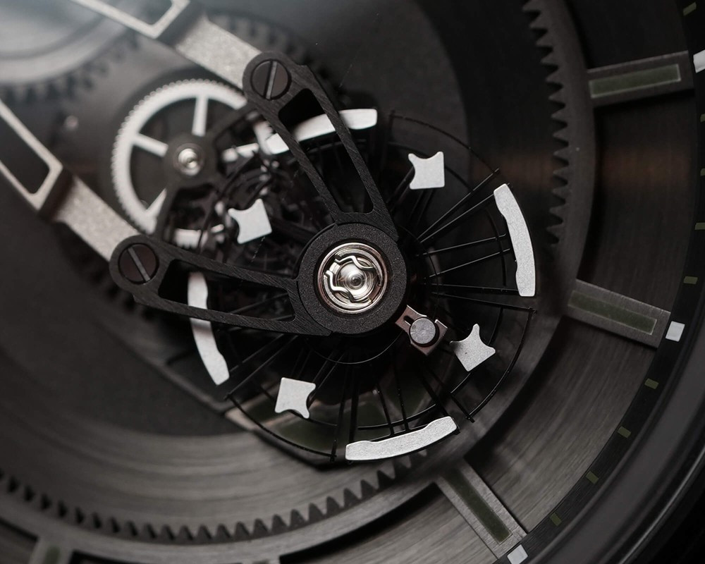 Часы Ulysse Nardin Freak X представлены в корпусе из карбона размером 43 мм и водонепроницаемостью 50 м. Внутри корпуса установлен автоматический механизм, Калибр UN-230, обладающий запасом хода 72 часа. На черном циферблате отображаются часы, минуты. Часы комплектуются текстильным ремешком с титановой застежкой.