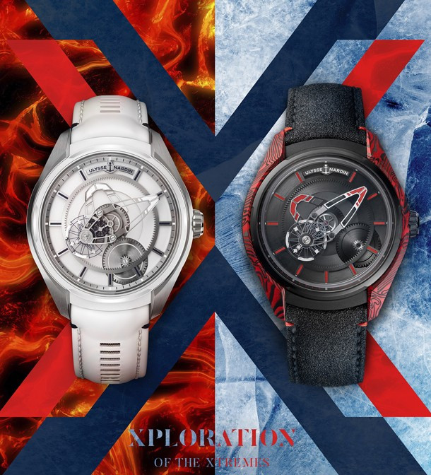 Часы Ulysse Nardin Freak X представлены в корпусе из титана с покрытием DLC и карбона размером 43 мм и водонепроницаемостью 50 м. Внутри корпуса установлен автоматический механизм, Калибр UN-230, обладающий запасом хода 72 часа. На черном циферблате отображаются часы, минуты. Часы комплектуются кожаным ремешком с титановой вставкой.