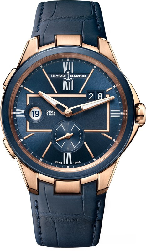 Часы Ulysse Nardin Classic Dual Time 42 mm представлены в корпусе из розового золота 18к размером 42 мм водонепроницаемостью 50 метров. Внутри корпуса установлен автоматический механизм, Калибр UN-24, обладающий запасом хода 42 часа. На синем циферблате отображаются часы, минуты, секунды, дата, двойное время. Часы поставляются на ремешке из кожи аллигатора с вставкой из розового золота 18к.