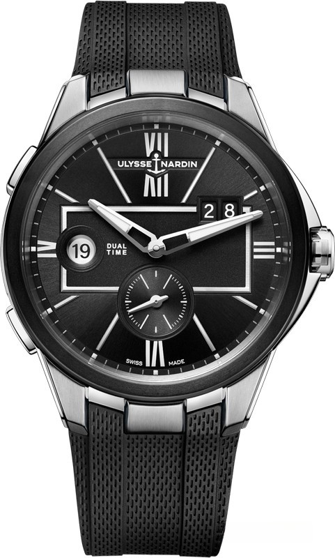 Часы Ulysse Nardin Classic Dual Time 42 mm представлены в корпусе из нержавеющей стали размером 42 мм водонепроницаемостью 50 метров. Внутри корпуса установлен автоматический механизм, Калибр UN-24, обладающий запасом хода 42 часа. На черном циферблате отображаются часы, минуты, секунды, дата, двойное время. Часы поставляются на каучуковом ремешке с вставкой из нержавеющей стали.