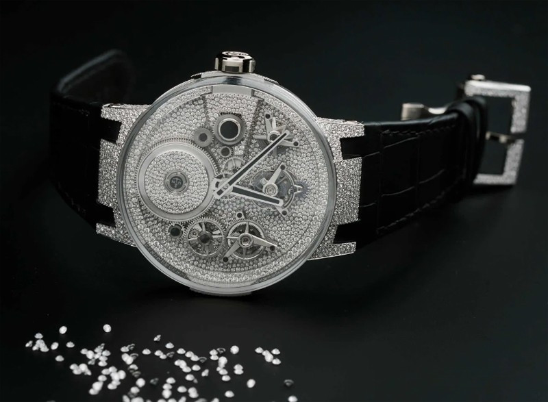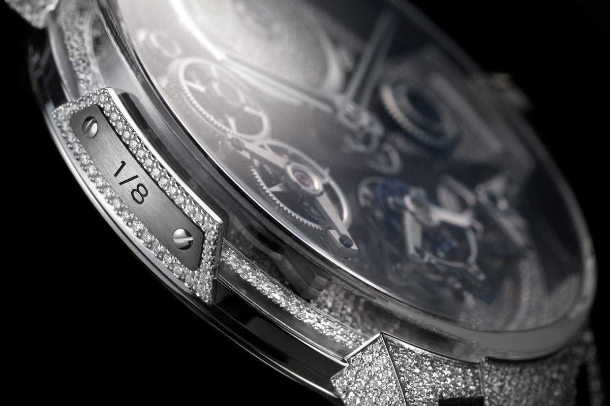 водонепроницаемость 30 м, корпус инкрустирован белыми бриллиантами, серия ограничена (8 шт.)