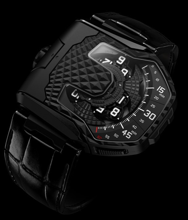 Эта модель знакомит вас с новой версией указателя времени с «блуждающим часом» в исполнении Urwerk – самым интуитивным способом индикации времени. 12 часовых делений, нанесенных на четыре сателлита, проплывают одно за другим перед минутной шкалой, обеспечивая одновременно цифровую и аналоговую индикацию. Это наиболее объемный и сложный механизм карусели, когда-либо создававшийся в Urwerk. Каждый сателлит установлен на карусель, которой управляет так называемая мега-карусель. Весь этот механизм, состоящий из рубинов, зубчатых колес и винтов, приводится в движение сложным планетарным ангренажем, заставляя его выполнять тщательно отрежиссированный танец. Другая уникальная техническая особенность Urwerk – система автоподзавода. Это позолоченная турбина, соединенная с ротором и обеспечивающая постоянный линейный подзавод UR-T8. Сателлитный указатель времени – один из элементов яркого стиля Urwerk, является плодом кропотливого труда часовых дел мастера и соучредителя этого часового дома Феликса Баумгартнера. Модель UR-T8 – истинное олицетворение этой концепции, доступна в первой серии из 60 экземпляров в натуральном титановом исполнении или с покрытием PVD черного цвета.