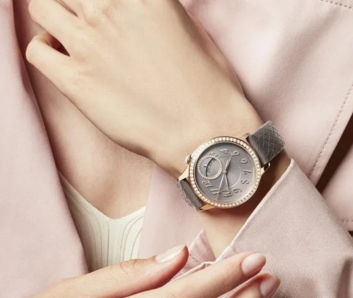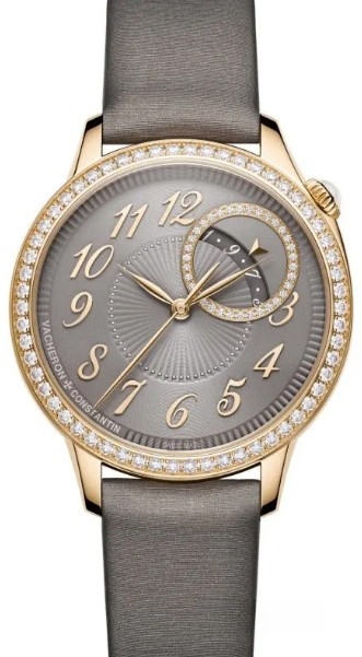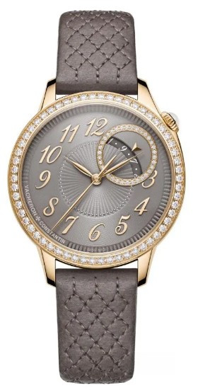 Часы Vacheron Constantin Egerie Self-Winding выпущены в круглом корпусе из розового золота 18к. Размер составляет 35 х 9.54 мм, водонепроницаемость 30 м. Внутри корпуса установлен автоматический механизм, Калибр 1088, обладающий запасом хода 40 часов. На сером циферблате с белыми бриллиантами отображаются часы, минуты, секунды, дата. Часы комплектуются ремешком из кожи аллигатора с застежкой из розового золота 18к. Безель из белых бриллиантов.