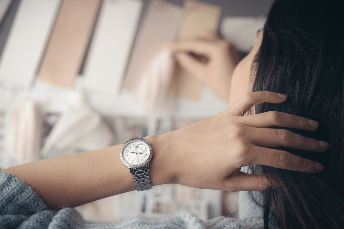 водонепроницаемость 30 м, безель из белых бриллиантов