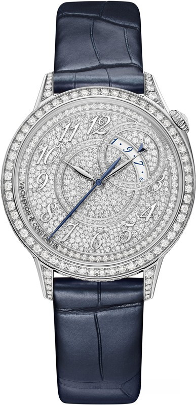 Часы Vacheron Constantin Egerie Self-Winding выпущены в круглом корпусе из белого золота 18к. Размер составляет 35 х 9.54 мм, водонепроницаемость 30 м. Внутри корпуса установлен автоматический механизм, Калибр 1088, обладающий запасом хода 40 часов. На циферблате с белыми бриллиантами отображаются часы, минуты, секунды, дата. Часы комплектуются ремешком из кожи аллигатора с вставкой из белого золота 18к. Корпус инкрустирован белыми бриллиантами.