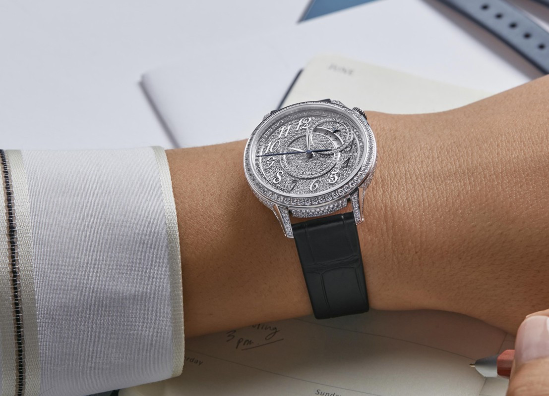 водонепроницаемость 30 м, корпус инкрустирован белыми бриллиантами