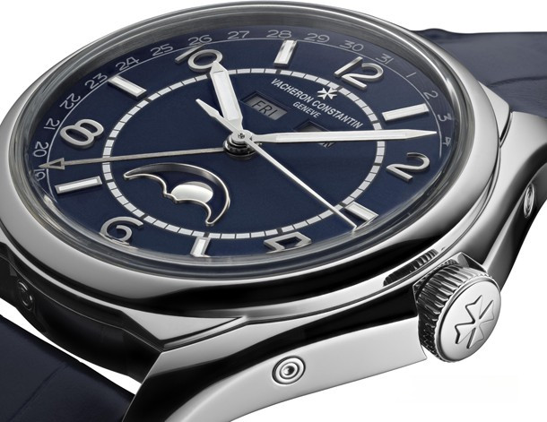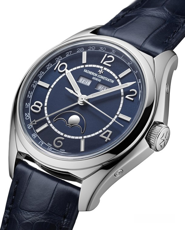 Часы FIFTYSIX® с функцией полного календаря — это особый экземпляр коллекции. Циферблат, исполненный сдержанной элегантности, выраженной при помощи утонченной матовой отделки и узора «солнечные лучи», несет на себе одно из самых ценных часовых усложнений с точки зрения поклонников и коллекционеров часов. Индикация дня недели, даты, месяца и фазы Луны осуществляется автоматическим механизмом 2460 QCL/1, оснащенным ротором из 22-каратного золота, который украшен узнаваемой эмблемой в виде Мальтийского креста. Этот сложнейший механизм, работающий с предельной точностью, требует корректировки всего на день лишь один раз в 122 года, а не каждые три года, как в случае с календарем с традиционной индикацией лунных фаз. У отметки «12 часов» на циферблате с характерным для всей коллекции оформлением размещены две прямоугольных апертуры, в которых отображается значение месяца и дня недели. Значение даты фиксируется центральной стрелкой, а индикатор лунных фаз в положении «6 часов» показывает картину ночного неба с изображением Луны. Среди других деталей дизайна: корпус диаметром 40 мм из нержавеющей стали; арабские цифры, часовые маркеры, часовая и минутная стрелки; ремешок из кожи аллигатора с классической застежкой из нержавеющей стали. Модель FIFTYSIX® с полным календарем представляет собой идеальное сочетание стильной элегантности, свойственной изделиям Vacheron Constantin, и невероятной изысканности, и сложности часовых функций.