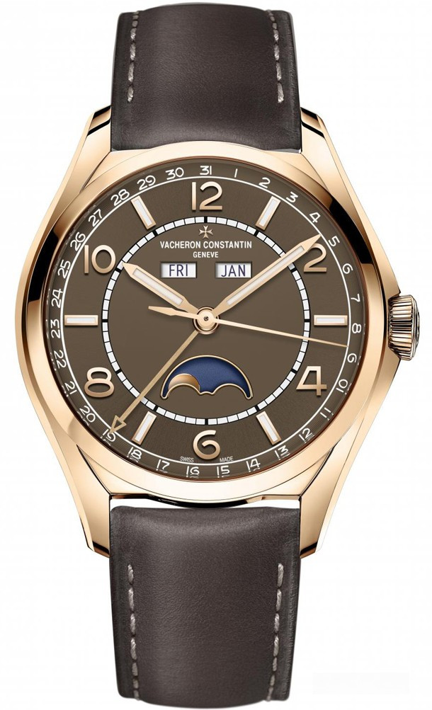 Часы Vacheron Constantin FiftySix Full Calendar Moon Phase представлены в корпусе из розового золота 18к размером 40 х 11.6 мм водонепроницаемостью 30 метров. Внутри корпуса находится автоматический механизм, Калибр 2460 QCL/1, обладающий запасом хода 40 часов. На коричневом циферблате отображаются часы, минуты, секунды, дата, день недели, месяц, фаза луны. Часы поставляются на кожаном ремешке с вставкой из розового золота 18к. Бутиковая модель.