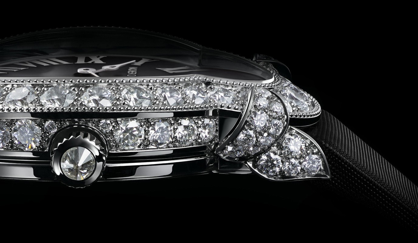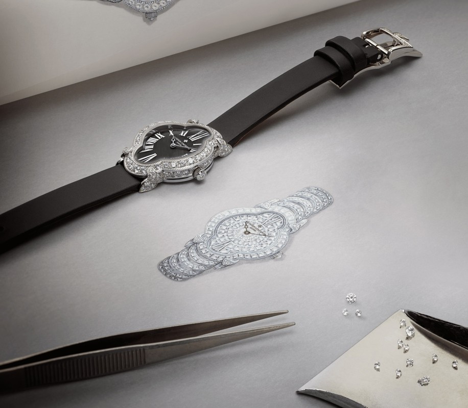 Вдохновением для модели Heure Romantique послужил стиль ар-нуво. Корпус, изготовленный из белого золота 18 карат, украшен белыми бриллиантами. Четыре бриллианта, закрепленные на ушках, подчеркивают плавные контуры слегка изогнутого корпуса, который венчает заводная головка с бриллиантом. Эти исключительные часы предлагаются с браслетом сатиновым ремешком с вставкой из белого золота. На черном циферблате отображаются часы и минуты. Внутри корпуса устновлен механизм с ручным заводом.