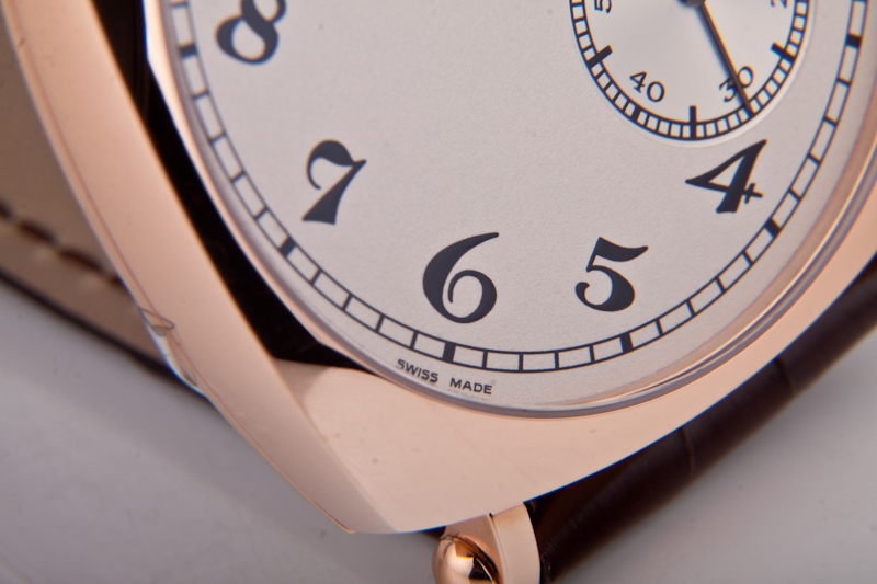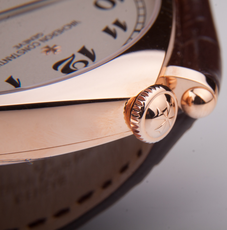 Часы из специальной серии Vacheron Constantin Historiques American 1921 82035/000R-9359 выпущены в круглом корпусе из розового золота, 18к. Размер составляет 40 х 40 мм, водонепроницаемость 30 м. Внутри корпуса установлен механизм с ручным заводом, Калибр 4400 AS, обеспечивающий запас хода 65 часов. На белом циферблате отображаются часы, минуты, секунды. Часы комплектуются ремешком из кожи аллигатора с золотой, 18к вставкой.