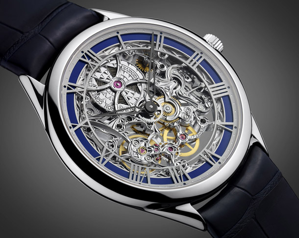 Часы скелетон Vacheron Constantin Metiers d`Arts Mecaniques Ajourees 82020/000G-9925 выпущены в круглом корпусе из белого золота 18к. Размер составляет 40 х 7,5 мм, водонепроницаемость 30 м. Внутри корпуса установлен механизм с ручным заводом, Калибр 4400SQ, обеспечивающий запас хода 65 часов. На серебристом циферблате отображаются часы, минуты. Часы комплектуются ремешком из кожи аллигатора с вставкой из белого золота 18к.