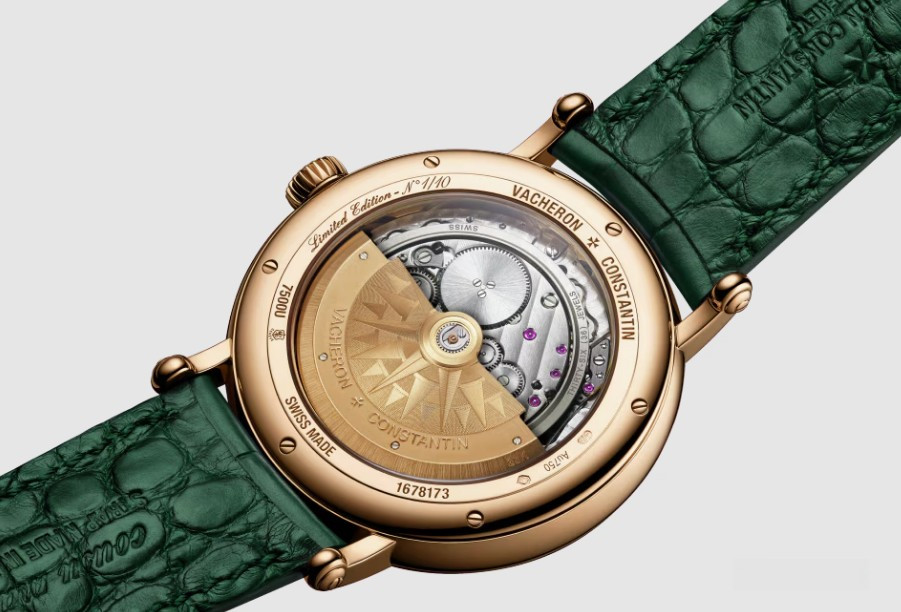 Часы Vacheron Constantin Metiers d`Arts Tribute to Explorer Naturalists представлены в корпусе размером 41 х 11.68 мм из розового золота 18к водонепроницаемостью 30 метров. Внутри корпуса установлен автоматический механизм, Калибр 1120 AT/1, обладающий запасом хода 40 часов. На зеленом циферблате отображаются часы, минуты. Часы поставляются на ремешке из кожи аллигатора с золотой застежкой. Серия ограничена.