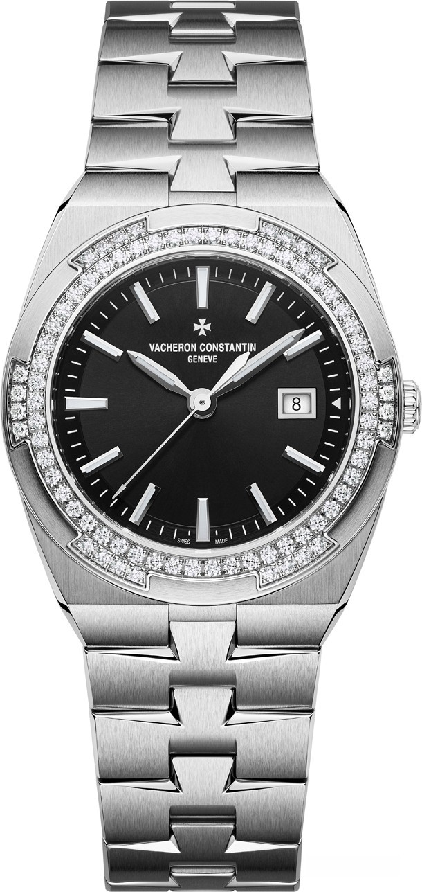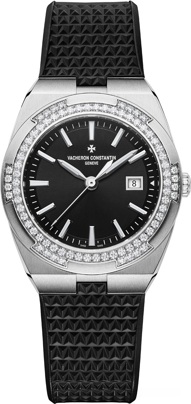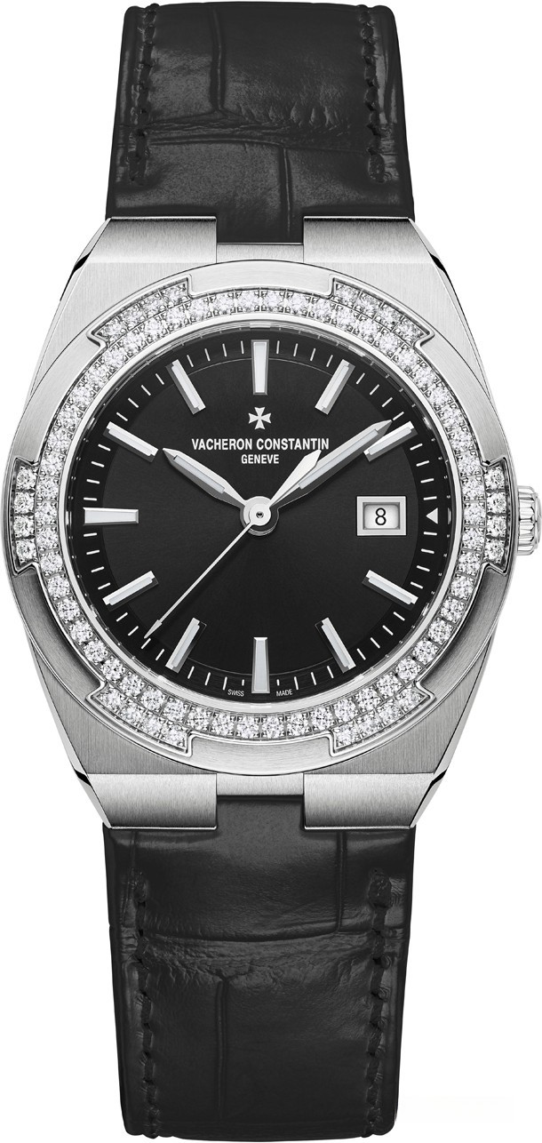 Overseas Lady Quartz заключены в корпус диаметром 33 мм, сочетающий женственность и шарм со спортивным видом. Обрамленный безелем из бриллиантов, его черный лакированный циферблат с лучистым гильоше создает приятный контраст ограненным люминесцентным часовыми маркерами и стрелками из 18-каратного белого золота. Это практичная и хорошо читаемая модель Overseas водонепроницаемостью до 50 метров. Новинка поставляется на стальном браслете, в комплекте ремешки из каучука и кожи аллигатора.