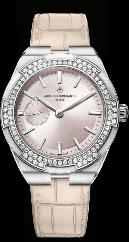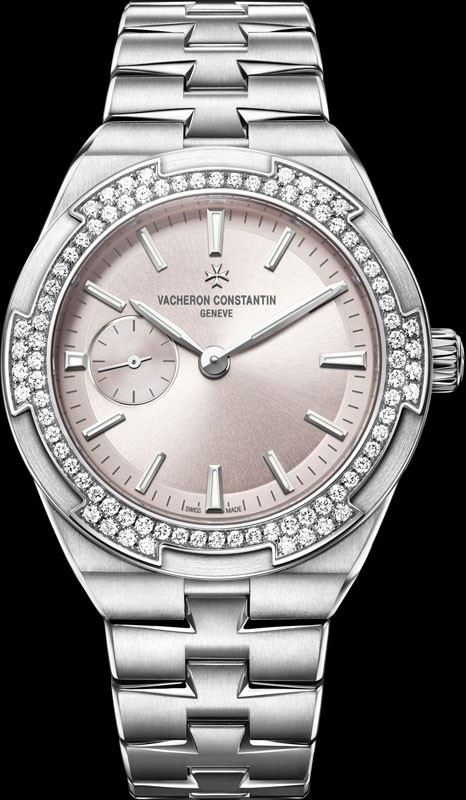 Часы сертифицированы Женевским клеймом. Калибр 5300 разработан и произведен Vacheron Constantin. Механический, с автоматическим подзаводом. Запас хода около 44 часов. Индикация: часы, минуты, малая секундная стрелка в положении «9 часов». Корпус: нержавеющая сталь. Безель украшен бриллиантами (84 бриллианта круглой огранки). Диаметр 37 мм, толщина 10,8 мм. Экран из мягкой стали обеспечивает антимагнитную защиту. Завинчивающаяся заводная головка. Прозрачная задняя крышка корпуса из сапфирового стекла. Водонепроницаемость проверена под давлением в 15 бар (около 150 метров). Циферблат: полупрозрачное лаковое покрытие розово-бежевого цвета, с матовой отделкой и узором «солнечные лучи», минутная шкала с бархатистой кромкой. Часовые метки, часовая и минутная стрелки из золота 18 карат подсвечиваются белым люминесцентным материалом. Стальной браслет, звенья в форме половинки мальтийского креста с полированной и матовой отделкой. В комплект входит: второй ремешок розово-бежевого/синего цвета из кожи миссисипского аллигатора с подкладкой из черного нубука и эффектом микроперфорации, ручная работа, крупный квадратный рисунок; третий ремешок из розово-бежевого/синего каучука. Общая закрепка бриллиантов 84 бриллианта круглой огранки общим весом около 1 карата.