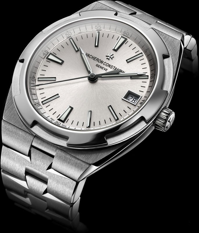 Часы сертифицированы Женевским клеймом. Калибр 5100 разработан и произведен Vacheron Constantin. Механический, с автоматическим подзаводом. Запас хода около 60 часов. Индикация: часы, минуты, центральная секундная стрелка, окошко даты. Корпус: нержавеющая сталь, диаметр 41 мм, толщина 11 мм. Экран из мягкой стали обеспечивает антимагнитную защиту. Завинчивающаяся заводная головка. Прозрачная задняя крышка корпуса из сапфирового стекла. Водонепроницаемость проверена под давлением 15 бар (около 150 метров). Циферблат: полупрозрачное лаковое покрытие серебристого цвета, с матовой отделкой и узором «солнечные лучи», минутная шкала с бархатистой кромкой. Часовые метки, часовая и минутная стрелки из золота 18 карат подсвечиваются белым люминесцентным материалом. Браслет/ремешок: стальной браслет, звенья в форме половинки мальтийского креста, с полированной и матовой отделкой. В комплект входят: второй ремешок черного/синего цвета из кожи миссисипского аллигатора с подкладкой из черного нубука и эффектом микроперфорации, ручная работа, крупный квадратный рисунок; третий ремешок из черного/синего каучука. Застежка Браслет из нержавеющей стали с тройной раскладывающейся застежкой, с кнопкой и системой для удобной регулировки.