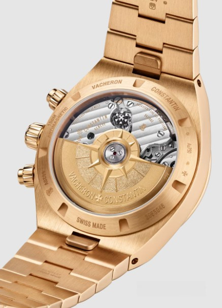 Часы сертифицированы Женевским клеймом. Внутри корпуса находится Калибр 5200. Механизм разработан и произведен Vacheron Constantin, механический, с автоматическим подзаводом. Запас хода около 52 часов. Индикация: часы, минуты, секунды и дата. Малая секундная стрелка в положении «9 часов». Окошко даты между 4 и 5 часами. Хронограф с колонным колесом (30-минутный и 12-часовой счетчик). Корпус из розового золота 18к. Диаметр 42,5 мм, толщина 13,7 мм. Экран из мягкой стали обеспечивает антимагнитную защиту. Завинчивающая заводная головка и кнопки на четверть поворота со стопором. Прозрачная задняя крышка корпуса из сапфирового стекла. Водонепроницаемость проверена под давлением 15 бар (около 150 метров). Циферблат синий, минутная шкала с бархатистой кромкой, счетчики хронографа. Часовые метки, часовая и минутная стрелки подсвечиваются белым люминесцентным материалом. Браслет из розового золота 18к. В комплект входит ремешок из каучука и кожи аллигатора.