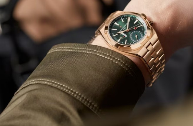 Корпус диаметром 41 мм, толщина 12.8 мм, изготовлен из розового золота 18к. Циферблат зеленого цвета. Водонепроницаемость составляет 150 метров. Циферблат часов очень легко читается. Местное время отображается при помощи центральных фасетных стрелок и люминесцентных маркеров. Второй часовой пояс (часто именуемый «домашним временем») изображен в виде маленькой стрелки с треугольным наконечником. На 9-ти часах находится индикатор дня/ночи, который связан с домашним временем. На 6-ти часах расположен индикатор даты. Настройка даты осуществляется при помощи кнопки на 4-х часах. Дата синхронизируется с местным временем. Настройка обеих часовых поясов производится при помощи центральной коронки. Время можно переводить вперед и назад, но это можно делать только в случае, когда коронка находится в правильном положении. Положение 1 позволяет переводить часы местного времени, Положение 2 дает возможность настройки обеих часовых поясов с минутами. Это возможно благодаря новому Калибру 5110 DT с запасом хода 60 часов.