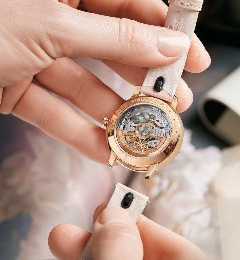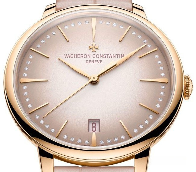 Часы с автоматическим подзаводом, полностью сохраняющие вневременную лаконичную элегантность 1950-х годов, отличаются изысканным женским стилем, переосмысленными изогнутыми линиями корпуса и слегка выпуклым циферблатом с градацией цвета. Другие отличительные особенности этих часов диаметром 36,5 мм из розового золота 750 пробы 5N – розово-бежевый циферблат, золотой безель и минутный счетчик, украшенный 48 бриллиантами. Кажущаяся простота этой модели Patrimony с автоматическим подзаводом достигнута тщательной проработкой каждой детали, как можно судить по отделке калибра 2450 Q6/3, отображающего часы, минуты, секунды и дату. Модель оснащена сменным ремешком, который открепляется легким нажатием на кнопку, без какого-либо инструмента.