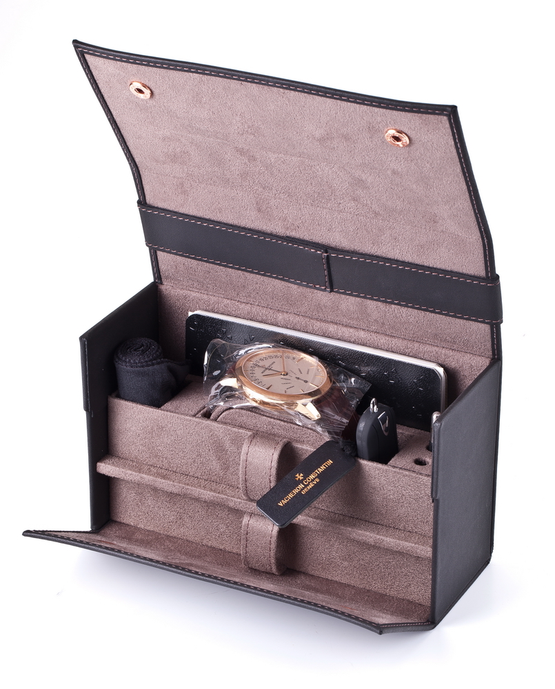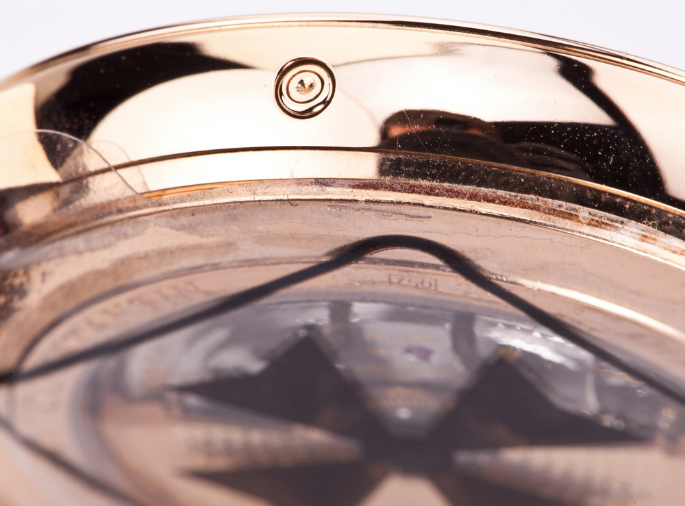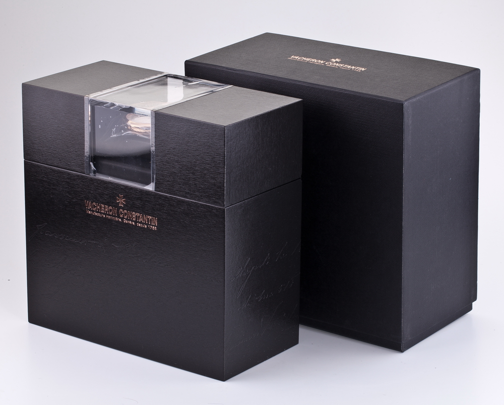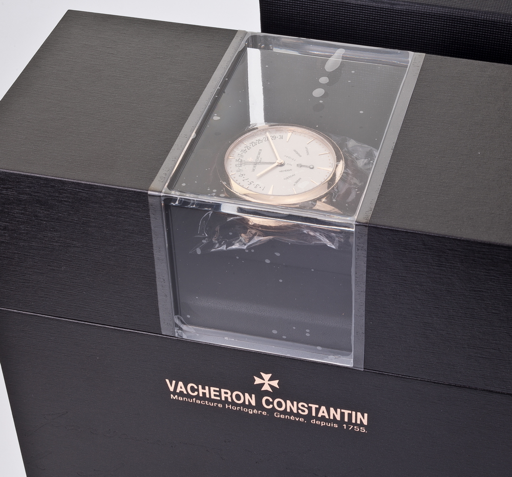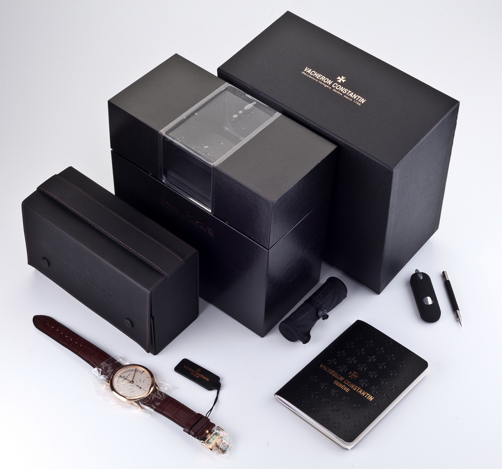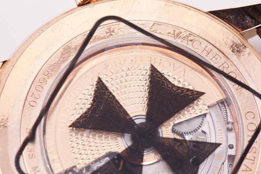 Patrimony («Наследие») – самая знаменитая коллекция женевского бренда Vacheron Constantin. Она служит образцом классического стиля швейцарских часов и «лицом» бренда. Серия Contemporaine Bi-Retrograde Day-Date, пожалуй, самая сдержанная и аристократическая линейка коллекции, была представлена в 2007 году. Дизайн часов изящен и консервативен, но за его внешней простотой скрывается сложный механизм, точность и выверенность функций и деталей. Кроме традиционной индикации часов и минут, часы снабжены двумя самыми полезными «усложнениями» – показателями числа и дня недели. Их отображение удачно реализовано с помощью двух ретроградных указателей в верхней и нижней частях циферблата, соответственно. Достигнув крайнего значения, стрелка указателя возвращается в исходное положение менее чем за 1/10 долю секунды. Часы имеют ультратонкий корпус из розового золота толщиной всего 10 мм, в который помещен калибр 2460 R31 R7 с женевским клеймом. Механизм имеет ротор из гильошированного желтого золота 22 карат, состоит 283 деталей, 27 камней. Его баланс имеет частоту колебаний 28800 полуколебаний в час. Запас хода составляет 40 часов, чего вполне достаточно, с учетом наличия автоматического подзавода. Декорированный фрагмент калибра виден за задней крышкой часов в апертуре, покрытой сапфировым стеклом. Ремешок выполнен из коричневой кожи аллигатора и имеет золотую застежку с фирменным знаком бренда – мальтийским крестом.