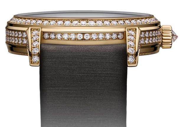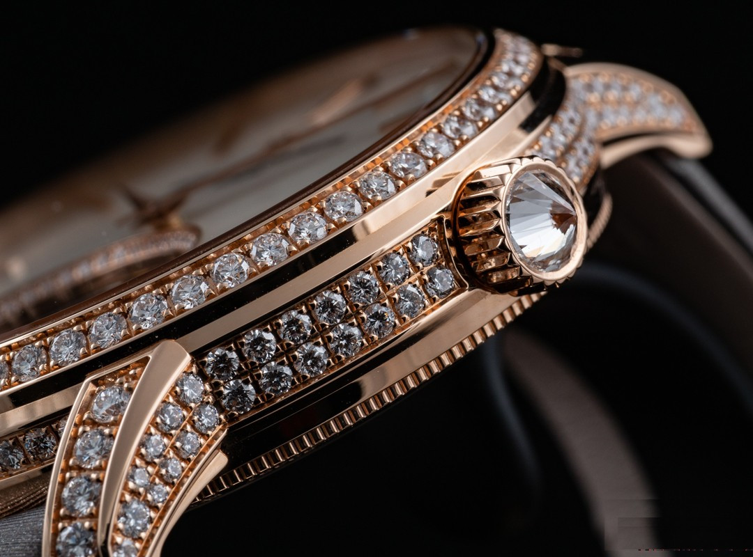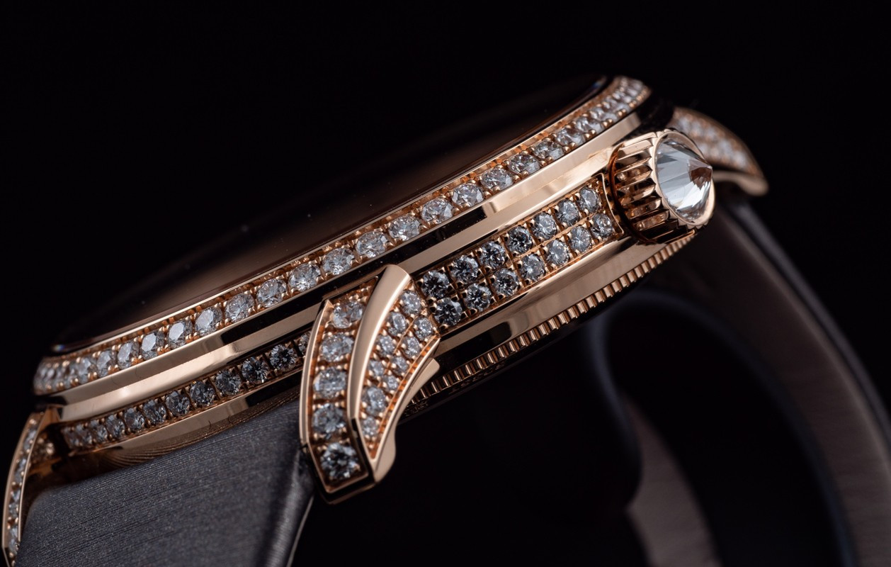 водонепроницаемость 30 м, корпус инкрустирован белыми бриллиантами