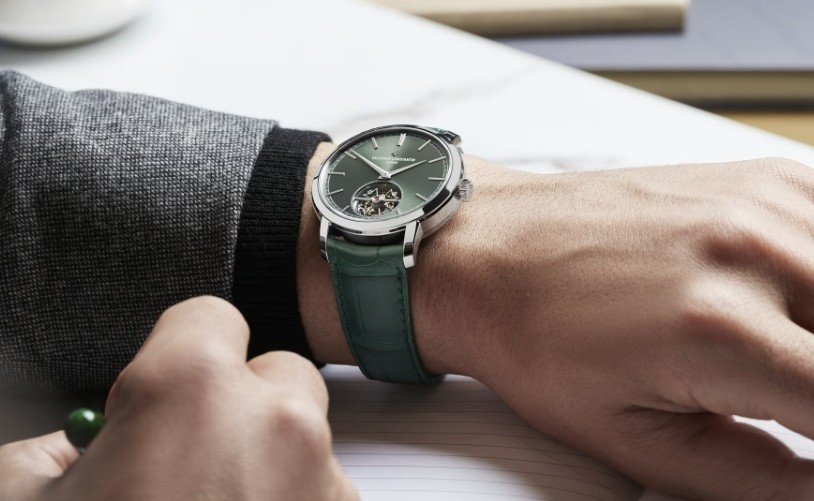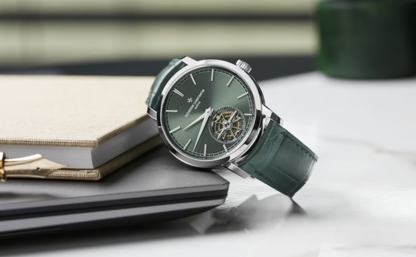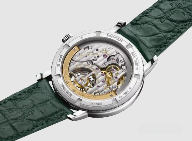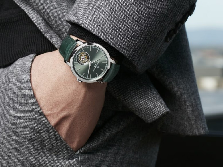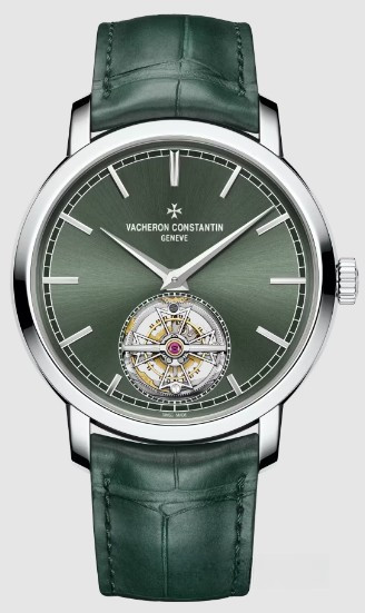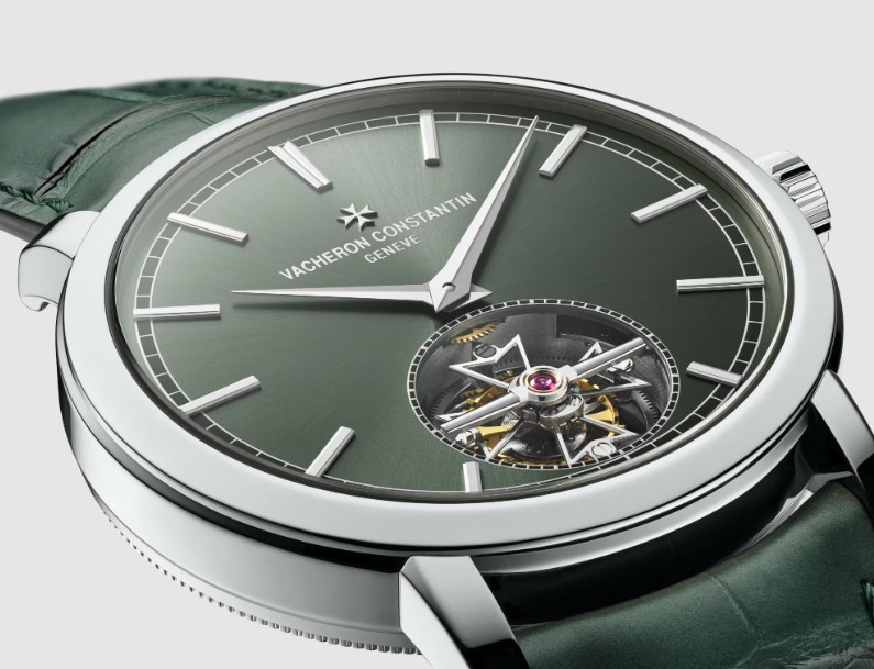 Часовая мануфактура Vacheron Constantin представила новинку. Речь идет о Tourbillon Traditionelle в платиновом корпусе с зеленым циферблатом. Это первый автоматический турбийон от Vacheron Constantin. Новый Traditionelle Tourbillon обладает мануфактурным Калибром 2160 с балансовой частотой 18 000 пк/час. Это низкочастотный автоматический турбийон с открытой клетью в форме мальтийского креста. Толщина механизма составляет 5.65 мм. Автоматический механизм имеет сложный спуск, его запас хода составляет 80 часов.