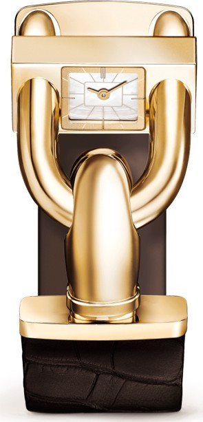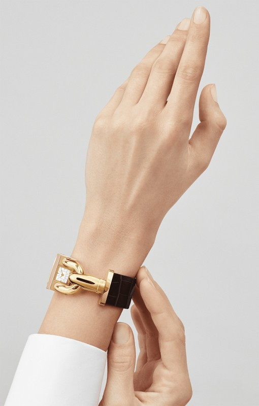 Смелые часы Cadenas® сегодня смотрятся так же современно, как и в 1935 году, когда Дом Van Cleef & Arpels впервые представил их публике. Их конструкция с наклонным циферблатом позволяет проверять время незаметно для окружающих, а строгие линии корпуса гармонично сочетаются с изгибами замка. Часы Cadenas. Корпус из желтого золота 14 x 26 мм; безель из желтого золота; циферблат из белого перламутра; заводная головка из желтого золота; ремешок из матовой кожи аллигатора шоколадного цвета, застежка из желтого золота; кварцевый механизм.
