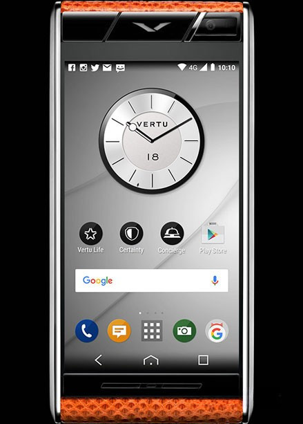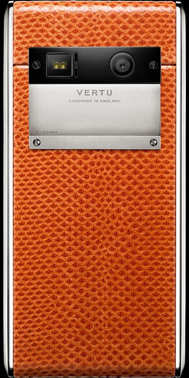 В оформлении модели Aster Tangerine Karung использована экзотическая кожа водяной змеи, которая красиво переливается и бесподобна на ощупь. Корпус из матового и полированного титана класса 5 и динамик с крышкой из полированного титана с черным PVD-покрытием выглядят привлекательно и элегантно. Операционная система Android™ 5.1 (Lollipop). Четырехъядерный процессор Qualcomm® Snapdragon™ 801 с тактовой частотой 2,3 ГГц. Яркий высококонтрастный дисплей с высоким разрешением (1080р, 473dpi) диагональю 4,7 дюйма (11,9 см), защищенный сапфировым стеклом. 13-мегапиксельная основная камера с автофокусом и двойной светодиодной вспышкой. Фронтальная камера 2,1 МП, совместимая со Skype™. 64 ГБ встроенной памяти. Стереодинамики Hi-Fi (13 x 18 мм) с поддержкой технологии объемного звучания Dolby® Digital Plus. Технология A-GPS и компас. Гироскоп и акселерометр для определения ориентации экрана и игр. Беспроводная зарядка, совместимая с Qi. Встроенный литий-ионный (Li-ion) аккумулятор емкостью 2275 мАч. Время работы в режиме разговора: до 15 ч 30 мин (WCDMA). Время работы в режиме ожидания: До 380 ч. Связь и передача данных.Четыре диапазона GSM: 850/900/1800/1900 МГц. Диапазоны WCDMA I, II, IV, V, VIII. DC-HSPA+ Release 8, Cat24 (загрузка 42 Мбит/с), Cat6 (отправка 5,76 Мбит/с). Диапазоны LTE² 1-5,7,8,17,20 и 25. LTE FDD² Cat4 (загрузка 150 Мбит/с, отправка 50 Мбит/с). Двухдиапазонная сеть WLAN 802.11 a, b, g, n, ac, включая WAPI для КНР. Разъем MicroAB USB с поддержкой USB On-The-Go. Аудиоразъем 3,5 мм. Bluetooth® v4.0 с поддержкой LE. Поддержка высококачественного кодирования звука CSR aptX®. NFC с поддержкой элементов безопасности (встроенных и на SIM-карте). Точка доступа WiFi (режим модема и портативная точка доступа).