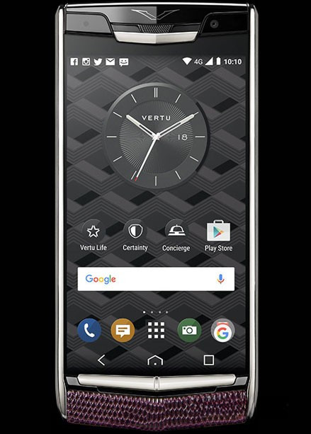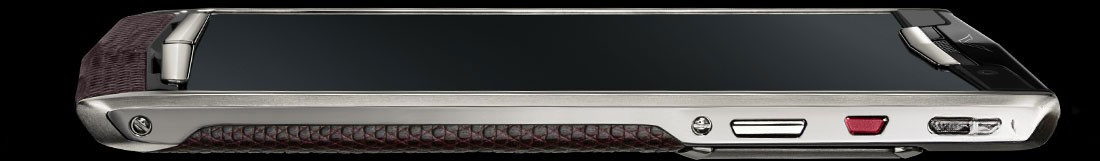 Signature Touch Grape Lizard с черной керамической крышкой динамика, боковыми панелями из матового и полированного титана класса 5 и титановой задней панелью. Для отделки использована кожа ящерицы, поставляемая небольшой семейной кожевенной мастерской, которая была основана в Испании более 50 лет назад. Экран нового Signature Touch изготовлен из цельного поликристалла сапфира весом 130 карат. Данный материал обеспечивает высокое качество изображения и отличается непревзойденной стойкостью к появлению царапин. Операционная система Android™ 5.1 (Lollipop). Восьмиядерный 64-битный процессор Qualcomm® Snapdragon™ 810. Яркий высококонтрастный дисплей с высоким разрешением (1080р, 428ppi) диагональю 5,2 дюйма, защищенный стеклом из поликристалла сапфира. 21-мегапиксельная основная камера с фазовым автофокусом и двойной двухтональной светодиодной вспышкой. Фронтальная широкоугольная камера 2,1 МП. 64 ГБ встроенной памяти, поддержка карт памяти формата uSD объемом 64 ГБ, 4 ГБ ОЗУ. Стереодинамики Hi-Fi (13 x 18 мм) с поддержкой технологии объемного звучания Dolby® Digital Plus. Технология A-GPS и компас. Гироскоп и акселерометр для определения ориентации экрана и игр. Беспроводная зарядка, совместимая с Qi. Quallcom® Quick Charge™ 2.0. Встроенный перезаряжаемый литий-ионный аккумулятор номинальной емкостью 3160 мАч (мин. 3080 мАч). Время работы в режиме разговора: до 21 ч. Время работы в режиме ожидания: до 520 ч. Связь и передача данных. Диапазоны LTE FDD 1,2,3,4,5,7,8,13,17,20,25,28 и 29. Диапазоны LTE TDD 38,39,40,41. Диапазоны WCDMA I, II, IV, V, VIII. Диапазоны TD-SCDMA 34, 39. Четыре диапазона GSM: 850/900/1800/1900 МГц. LTE-A FDD/TDD 10 Cat6 (загрузка 300 Мбит/с, отправка 50 Мбит/с). DC-HSPA+ Release 8, Cat24 (загрузка 42 Мбит/с), Cat6 (отправка 5,76 Мбит/с). Двухдиапазонная сеть WLAN 802.11 a, b, g, n, ac, включая WAPI для КНР. Разъем Micro USB с поддержкой USB On-The-Go. Аудиоразъем 3,5 мм. Bluetooth® v4.0 с поддержкой LE. Поддержка высококачественного кодирования звука CSR aptX®. NFC с поддержкой технологии эмуляции карты (HCE). Точка доступа WiFi (режим модема и портативная точка доступа).