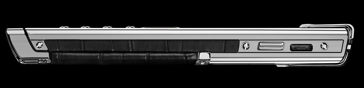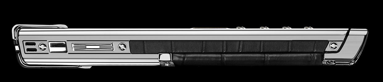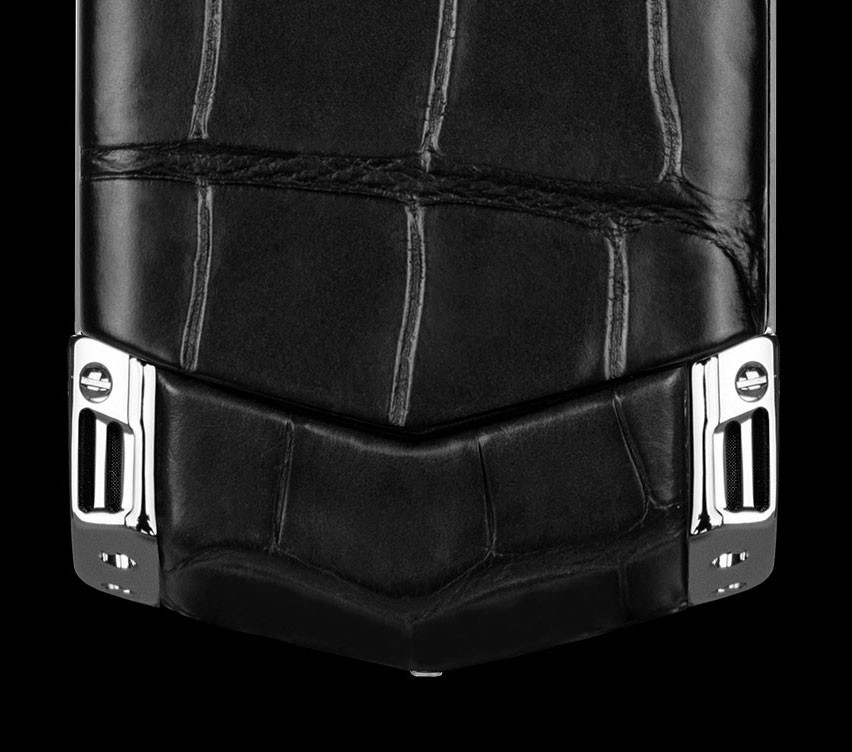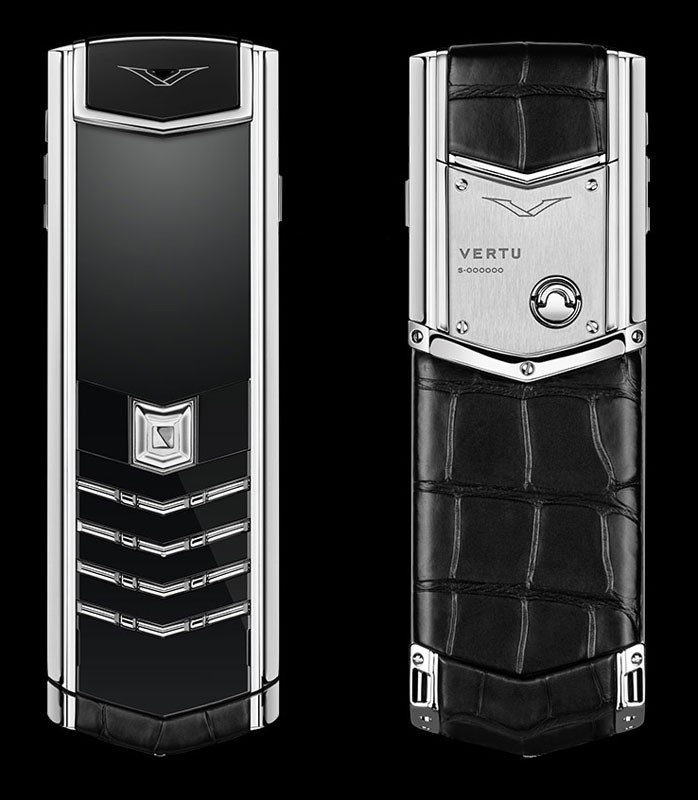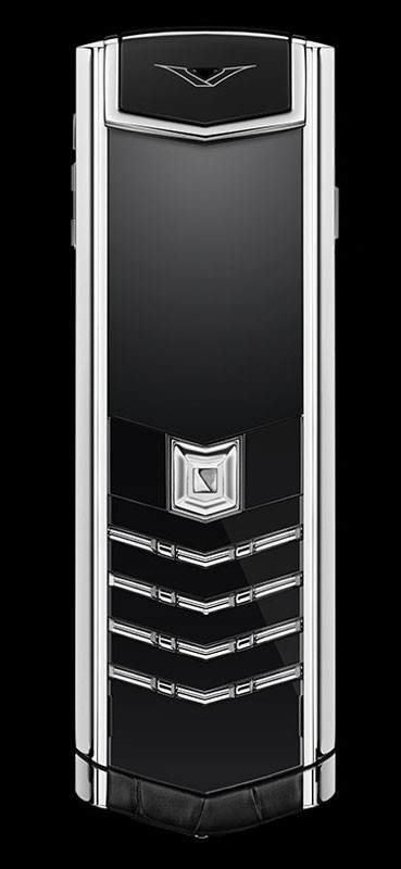 Матовая и глянцевая нержавеющая сталь. Черная кожа аллигатора. Панель динамика из сияющей черной керамики. Передняя панель из поликристалла сапфира с клавиатурой, символы на которой отображаются только при включении подсветки. Чехол из черной кожи аллигатора в тон. Эта модель воплощает в себе классические черты дизайна Vertu — ее передняя панель выполнена из поликристалла сапфира черного цвета, а символы на клавиатуре отображаются только при включении подсветки. Роскошная глубина черного цвета на передней панели гармонично дополнена черной кожей аллигатора, черными керамическими вставками с глянцевым отливом и элегантной отделкой боковых граней. Операционная система: Series 40. Характеристики аппаратного обеспечения: Портретный QVGA-дисплей с высоким разрешением диагональю 2 дюйма (5 см), 4 ГБ встроенной памяти, Hi-Fi динамик (11 x 15 мм) с высокой точностью воспроизведения звука, аккумулятор: съемный литий-ионный аккумулятор. Время работы в режиме разговора: до 5 ч 30 мин (GSM), до 3 ч (WCDMA), Время работы в режиме ожидания: до 300 ч. Связь и передача данных: четыре диапазона GSM: 850/900/1800/1900 МГц, диапазоны WCDMA¹ I и V, WLAN¹ 802.11b/g, разъем Micro USB с поддержкой USB On-The-Go, Bluetooth® v2.0 с поддержкой EDR. Чехол из черной кожи аллигатора в тон. Зарядное устройство с переходниками для розеток региональных стандартов. Автомобильное зарядное устройство. х2 кабеля Micro USB. Запасной аккумулятор. Полировочная салфетка. Дополнительный набор с кратким руководством, гарантийным талоном и сертификатом подлинности.