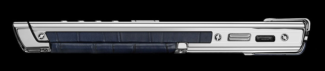 Сияющая нержавеющая сталь. Кожа аллигатора темно-синего цвета. Керамическая крышка динамика с серебристым PVD-покрытием. Передняя панель из сапфира с серебристым PVD-покрытием. В комплекте имеется чехол из кожи аллигатора темно-синего цвета в тон. В основе дизайне этого роскошного телефона — гармоничная триада холодных оттенков: мерцающий перелив голубого сапфира, насыщенный темно-синий цвет кожи аллигатора и благородное сияние серебристых акцентов. Операционная система: Series 40. Характеристики аппаратного обеспечения: Портретный QVGA-дисплей с высоким разрешением диагональю 2 дюйма (5 см), 4 ГБ встроенной памяти, Hi-Fi динамик (11 x 15 мм) с высокой точностью воспроизведения звука, аккумулятор: съемный литий-ионный аккумулятор. Время работы в режиме разговора: до 5 ч 30 мин (GSM), до 3 ч (WCDMA), Время работы в режиме ожидания: до 300 ч. Связь и передача данных: четыре диапазона GSM: 850/900/1800/1900 МГц, диапазоны WCDMA¹ I и V, WLAN¹ 802.11b/g, разъем Micro USB с поддержкой USB On-The-Go, Bluetooth® v2.0 с поддержкой EDR. В комплекте имеется чехол из кожи аллигатора темно-синего цвета в тон.Зарядное устройство с переходниками для розеток региональных стандартов. Автомобильное зарядное устройство. х2 кабеля Micro USB. Запасной аккумулятор. Полировочная салфетка. Дополнительный набор с кратким руководством, гарантийным талоном и сертификатом подлинности.