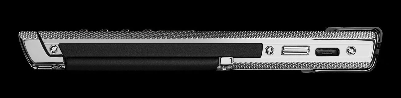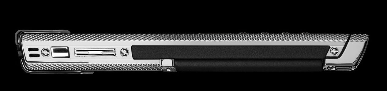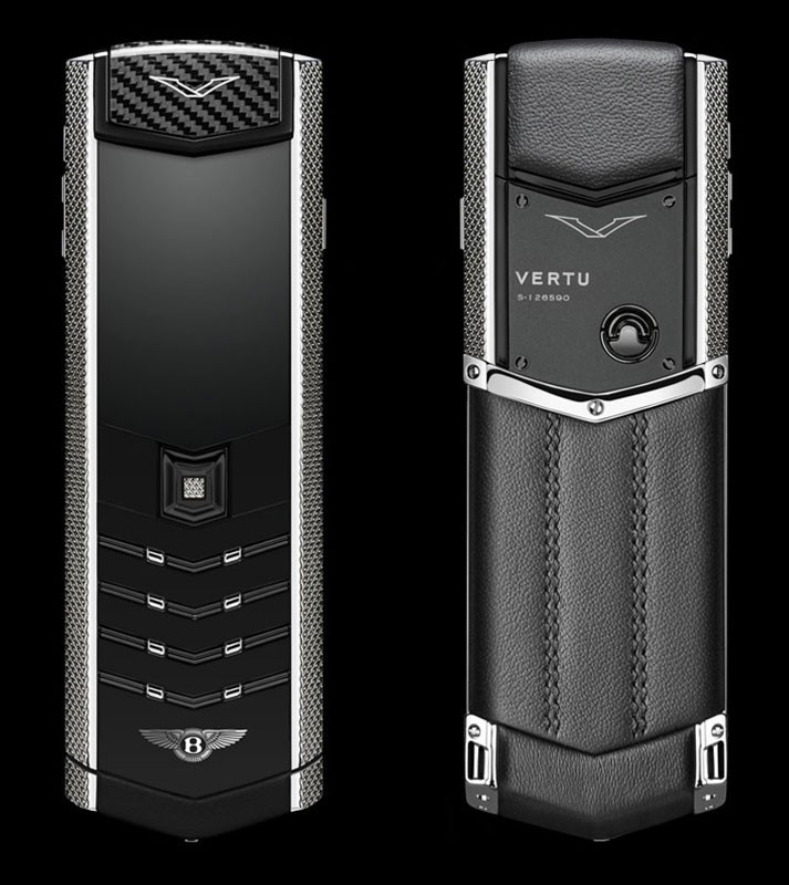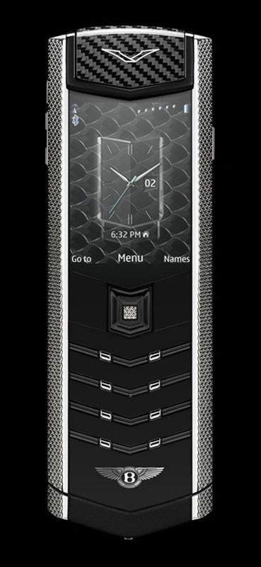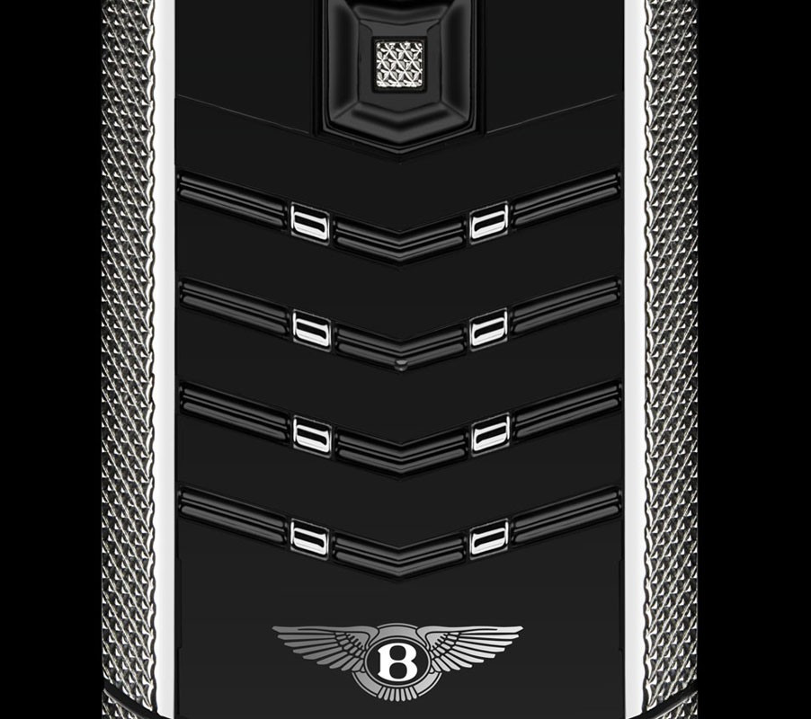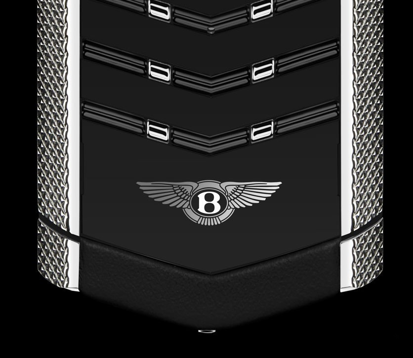 Кожа, используемая для отделки салонов автомобилей, с характерной гофрированной отстрочкой. Крышка динамика из углеродного волокна с фирменным узором Bentley. Глянцевые клавиши черного цвета с PVD-покрытием, символы на которых отображаются только при включении подсветки. Логотип Bentley в виде буквы В с крыльями на сапфировой вставке. Глянцевые боковые направляющие из нержавеющей стали с рифлением и клавиша выбора, украшенные функциональными и стильными дизайнерскими элементами Bentley.Signature for Bentley — шедевр, увековечивший бескомпромиссную роскошь Bentley Mulsanne Speed. В каждом элементе телефона отчетливо прослеживается связь с передовыми технологиями и дизайнерским гением Bentley. Фирменный узор дизайна крышки динамика Signature, выполненной из углеродного волокна, перекликается с элементами отделки Mulsanne Speed, а боковые направляющие из нержавеющей стали с рифлением делают телефон приятным на ощупь и визуально напоминают элементы управления, реализованные в автомобилях Bentley. Для отделки новой модели используется телячья кожа черного цвета Beluga Black, произведенная на кожевенной мастерской, которой автомобильная корпорация уже многие годы доверяет изготовление кожаных элементов для салона своих автомобилей. Из этого же материала выполнен и фирменный чехол для телефона, украшенный титановой эмблемой Bentley в виде буквы B с крыльями. Переднюю панель телефона украшает узнаваемый фирменный логотип Bentley в форме «окрыленной» буквы В, разместившийся под клавишами, на сапфировой вставке. Кроме того, связь с брендом Bentley прослеживается в фирменном программном обеспечении и эксклюзивной подборке обоев для рабочего стола с изображениями автомобилей Bentley.