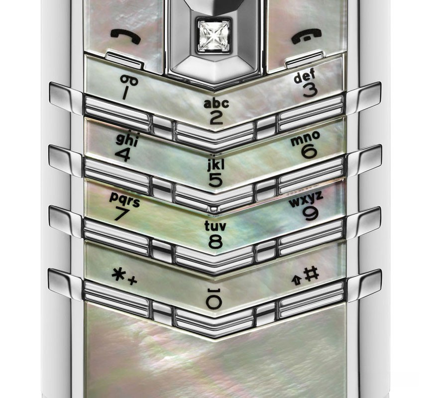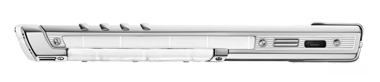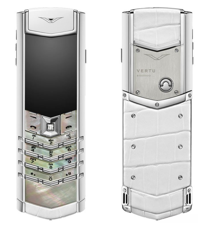 Сапфировые элементы на передней панели с вставками из перламутра. Кожа аллигатора белого цвета с перламутровым покрытием. Клавиша выбора, инкрустированная бриллиантом с огранкой «принцесса». Крышка динамика из полированной белой керамики. В комплекте имеется чехол-клатч из кожи аллигатора с перламутровым покрытием в тон.Элегантные модели этой коллекции украшены вставками из жемчужин, закрепленных под сапфировыми элементами на передней панели телефона. Телефон украшен клавишей выбора, инкрустированной бриллиантом с огранкой «принцесса», крышка его динамика выполнена из полированной белой керамики, а корпус телефона отделан кожей аллигатора белого цвета с перламутровым покрытием. В комплекте имеется чехол-клатч из кожи аллигатора белого цвета с перламутровым покрытием. Операционная система: Series 40. Характеристики аппаратного обеспечения: Портретный QVGA-дисплей с высоким разрешением диагональю 2 дюйма (5 см), 4 ГБ встроенной памяти, Hi-Fi динамик (11 x 15 мм) с высокой точностью воспроизведения звука, аккумулятор: съемный литий-ионный аккумулятор. Время работы в режиме разговора: до 5 ч 30 мин (GSM), до 3 ч (WCDMA), Время работы в режиме ожидания: до 300 ч. Связь и передача данных: четыре диапазона GSM: 850/900/1800/1900 МГц, диапазоны WCDMA¹ I и V, WLAN¹ 802.11b/g, разъем Micro USB с поддержкой USB On-The-Go, Bluetooth® v2.0 с поддержкой EDR. Зарядное устройство с переходниками для розеток региональных стандартов. Автомобильное зарядное устройство. х2 кабеля Micro USB. Запасной аккумулятор. Полировочная салфетка. Дополнительный набор с кратким руководством, гарантийным талоном и сертификатом подлинности.