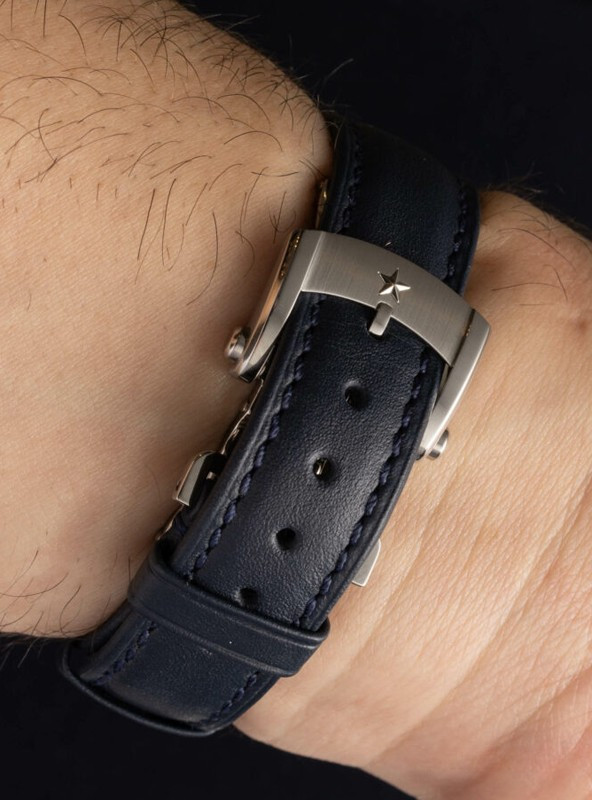 Часы Zenith Chronomaster Original 38 mm представлены в корпусе размером 38 x 13 мм из нержавеющей стали водонепроницаемостью 50 метров. Внутри корпуса установлен автоматический механизм, Калибр El Primero 3600, обладающий запасом хода 60 часов. На серебристом циферблате отображаются часы, минуты, секунды, дата, тахиметр, накопители хронографа. Часы поставляются на кожаном ремешке с застежкой из нержавеющей стали.