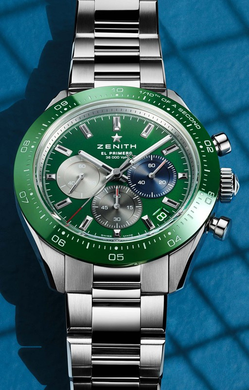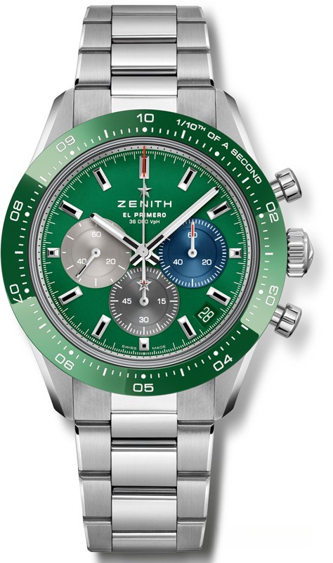 Часы Zenith Chronomaster Sport 2022 представлены в корпусе размером 41 х 13.6 мм из нержавеющей стали водонепроницаемостью 100 метров. Внутри корпуса установлен автоматический механизм, Калибр 3600, обладающий запасом хода 60 часов. На зеленом циферблате отображаются часы, минуты, секунды, дата, тахиметр. Часы поставляются на браслете из нержавеющей стали.