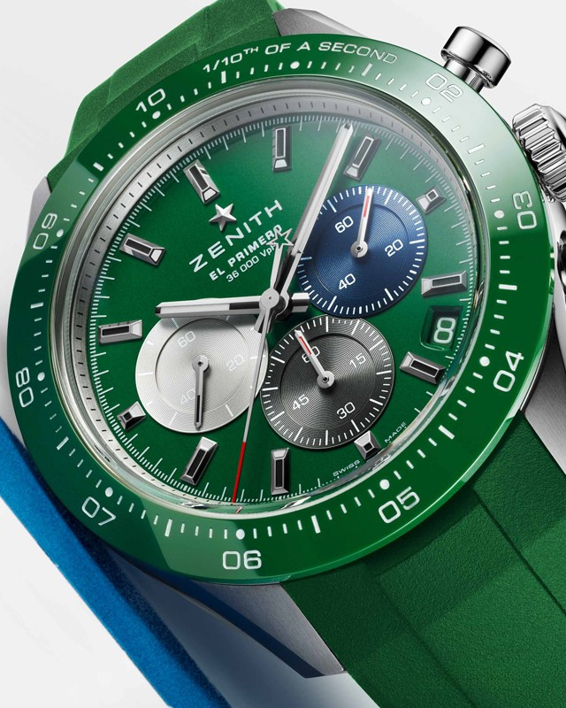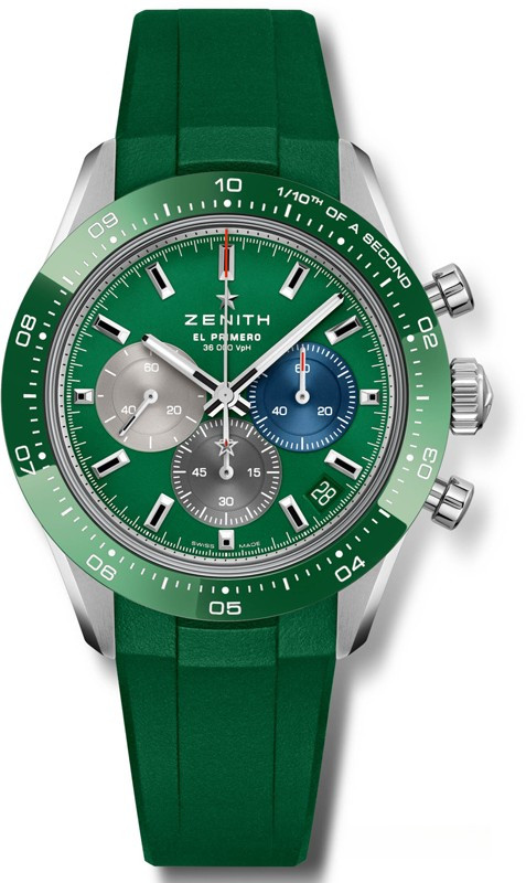 Часы Zenith Chronomaster Sport 2022 представлены в корпусе размером 41 х 13.6 мм из нержавеющей стали водонепроницаемостью 100 метров. Внутри корпуса установлен автоматический механизм, Калибр 3600, обладающий запасом хода 60 часов. На зеленом циферблате отображаются часы, минуты, секунды, дата, тахиметр. Часы поставляются на каучуковом ремешке с застежкой из нержавеющей стали.