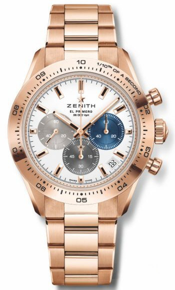 Часы Zenith Chronomaster Sport 2022 представлены в корпусе размером 41 х 13.6 мм из розового золота 18к водонепроницаемостью 100 метров. Внутри корпуса установлен автоматический механизм, Калибр 3600, обладающий запасом хода 60 часов. На белом циферблате отображаются часы, минуты, секунды, дата, тахиметр. Часы поставляются на браслете из розового золота 18к.
