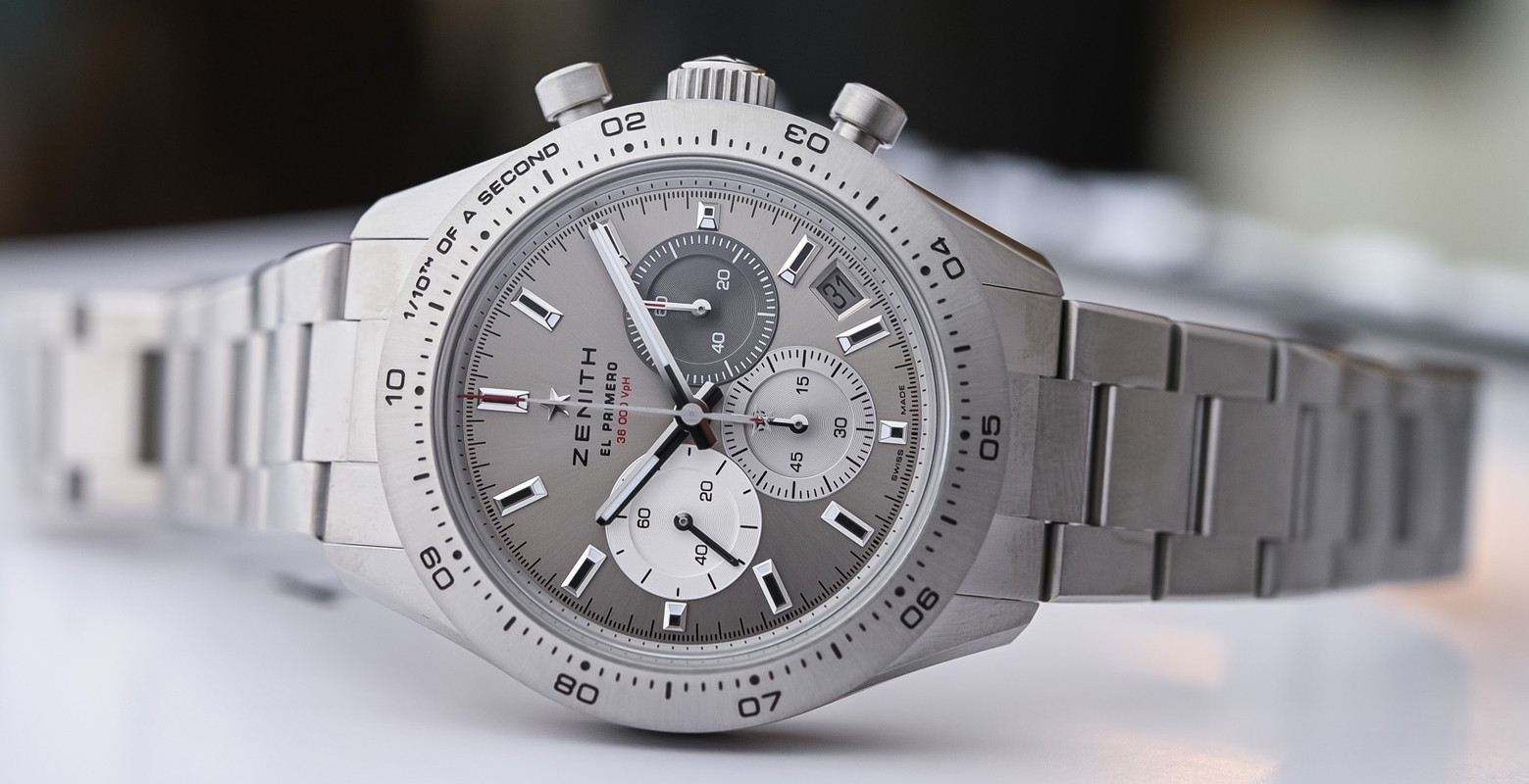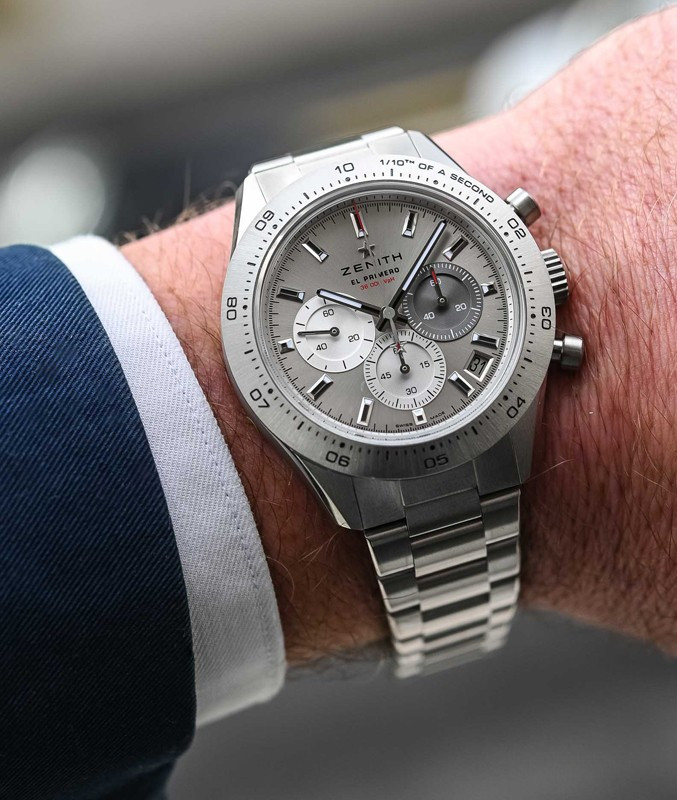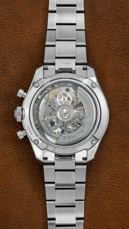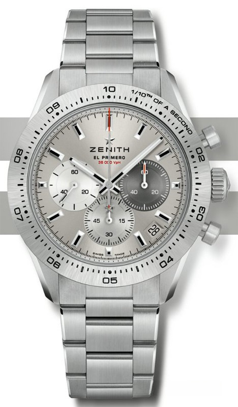 Часы Zenith Chronomaster Sport представлены в корпусе размером 41 х 13.8 мм из титана водонепроницаемостью 100 метров. Внутри корпуса установлен автоматический механизм, Калибр 3600, обладающий запасом хода 60 часов. На серебристом циферблате отображаются часы, минуты, секунды, дата, тахиметр. Часы поставляются на браслете из титана.