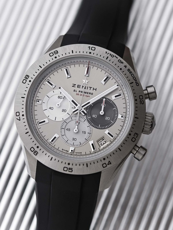 Часы Zenith Chronomaster Sport представлены в корпусе размером 41 х 13.8 мм из титана водонепроницаемостью 100 метров. Внутри корпуса установлен автоматический механизм, Калибр 3600, обладающий запасом хода 60 часов. На серебристом циферблате отображаются часы, минуты, секунды, дата, тахиметр. Часы поставляются на каучуковом ремешке с титановой застежкой.