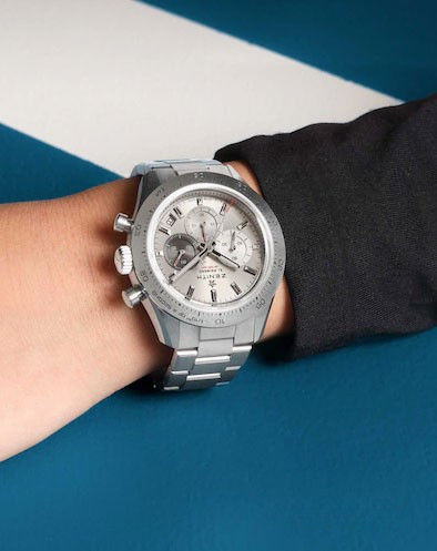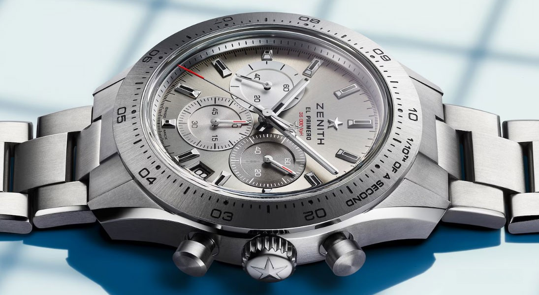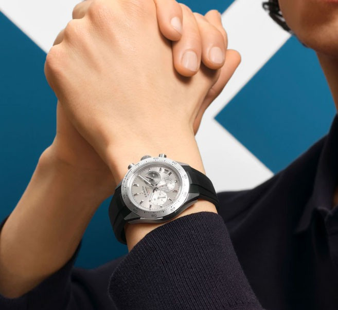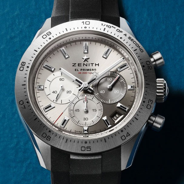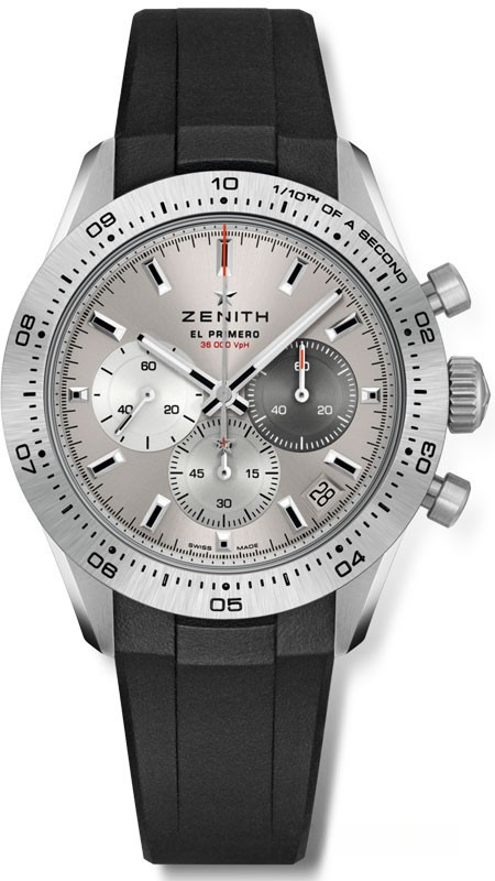 Часы Zenith Chronomaster Sport представлены в корпусе размером 41 х 13.8 мм из титана водонепроницаемостью 100 метров. Внутри корпуса установлен автоматический механизм, Калибр 3600, обладающий запасом хода 60 часов. На серебристом циферблате отображаются часы, минуты, секунды, дата, тахиметр. Часы поставляются на каучуковом ремешке с застежкой из титана.