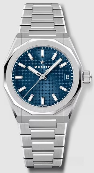 Часы Zenith Defy Skyline 36 mm представлены в корпусе размером 36 мм из нержавеющей стали водонепроницаемостью 100 метров. Внутри корпуса установлен автоматический механизм, Калибр Elite 670, обладающий запасом хода 50 часов. На синем циферблате отображаются часы, минуты, секунды, дата. Часы поставляются на браслете из нержавеющей стали.