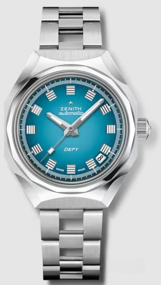 Часы Zenith Defy Revival A3642 представлены в корпусе диаметром 37 мм из нержавеющей стали водонепроницаемостью 300 метров. Внутр корпуса установлен автоматический механизм, Калибр Elite 670, обладающий запасом хода 50 часов. На голубом циферблате отображаются часы, минуты, секунды, дата. Часы поставляются на браслете из нержавеющей стали.