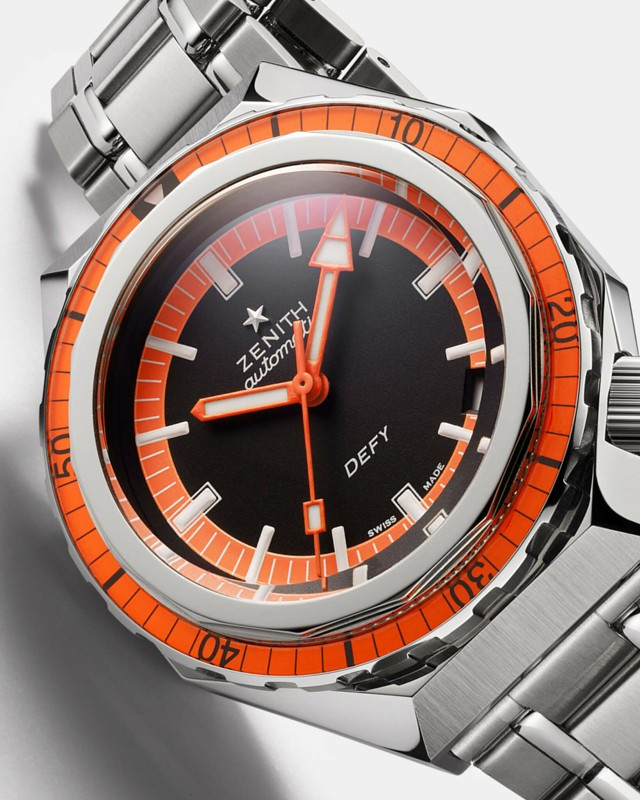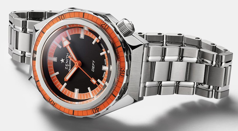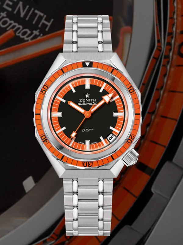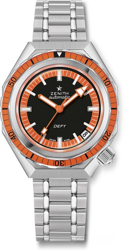Часы Zenith Defy Revival A3648 представлены в корпусе размером 37 х 15.5 мм из нержавеющей стали водонепроницаемостью 600 метров. Внутри корпуса установлен автоматический механизм, Калибр Elite 670, обладающий запасом хода 50 часов. На черном циферблате отображаются часы, минуты, секунды, дата. Часы поставляются на браслете из нержавеющей стали.