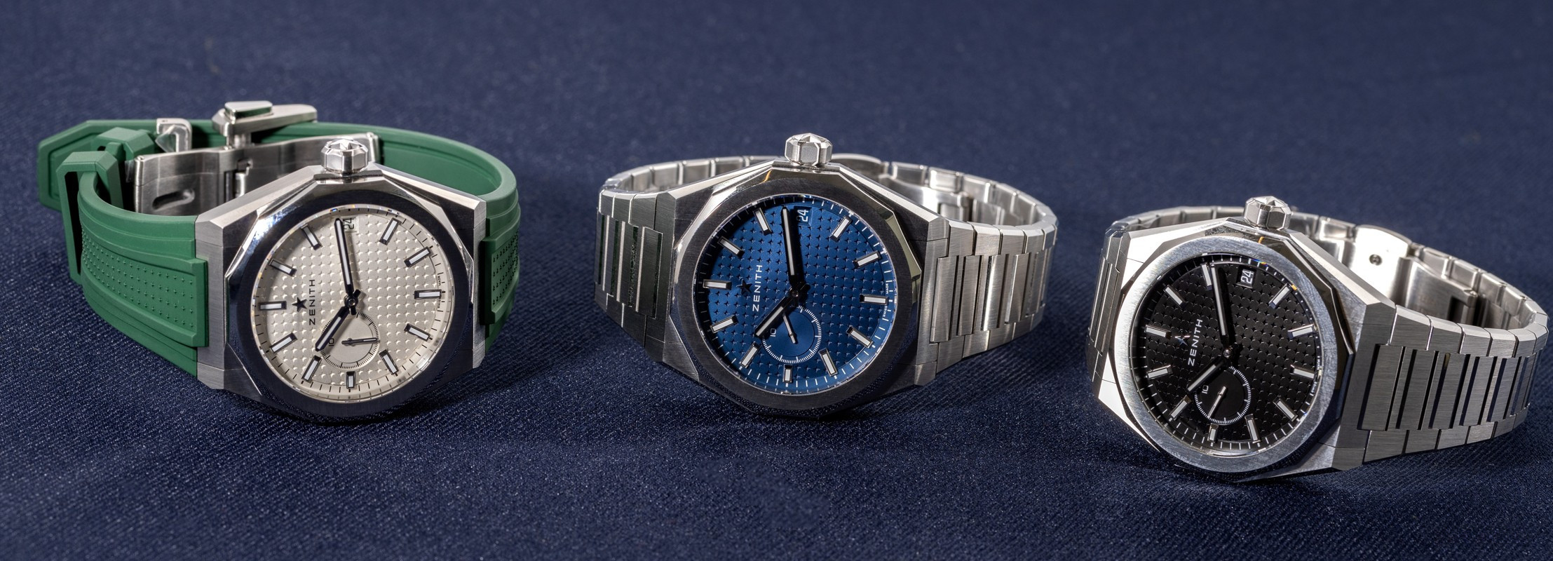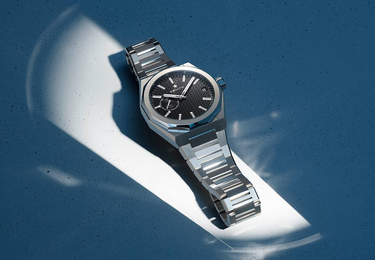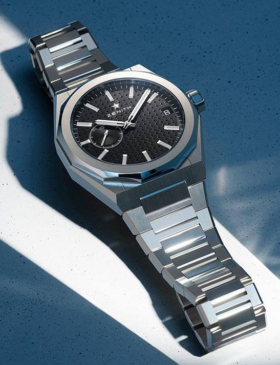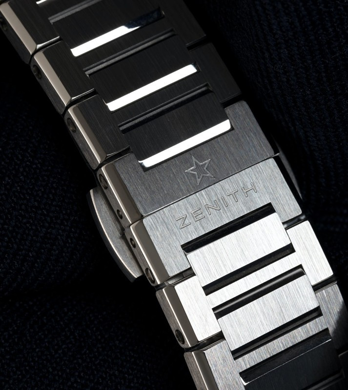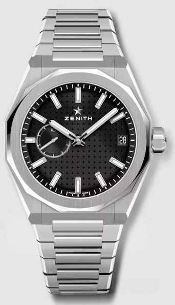 Часы Zenith Defy Skyline представлены в корпусе диаметром 41 мм из нержавеющей стали водонепроницаемостью 100 метров. Внутр корпуса установлен автоматический механизм, Калибр El Primero 3620, обладающий запасом хода 60 часов. На черном гильошированном циферблате отображаются часы, минуты, секунды, дата. Часы поставляются на браслете из нержавеющей стали.