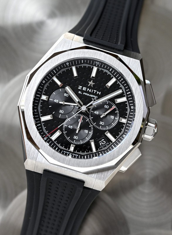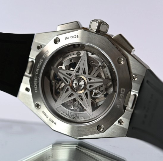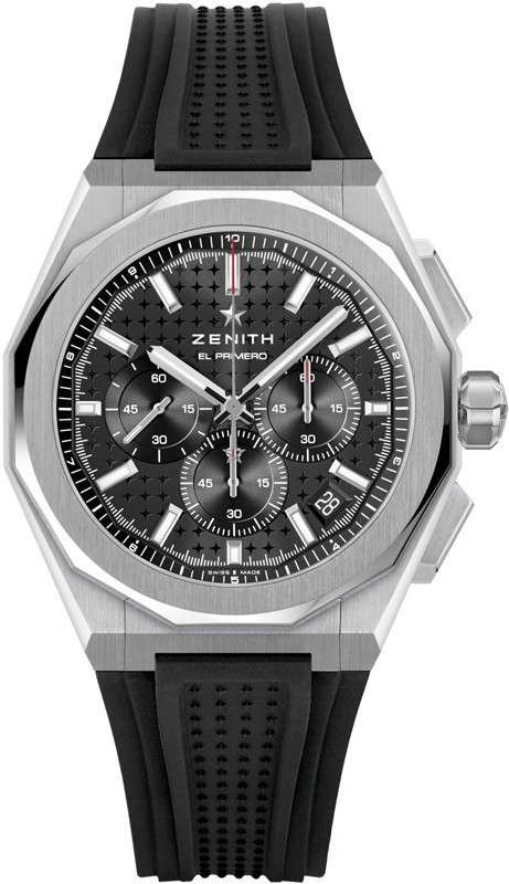 Часы Zenith Defy Skyline Chronograph представлены в корпусе размером 42 мм из нержавеющей стали водонепроницаемостью 100 метров. Внутри корпуса установлен автоматический механизм, Калибр El Primero 3600, обладающий запасом хода 60 часов. На черном циферблате отображаются часы, минуты, секунды, дата, накопители хронографа. Часы поставляются на каучуковом ремешке с застежкой из нержавеющей стали.