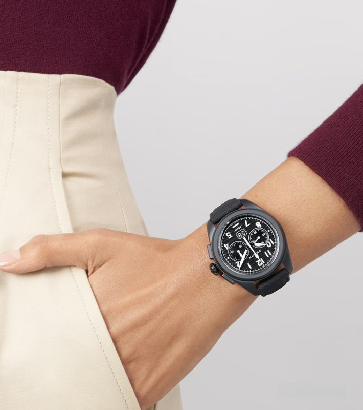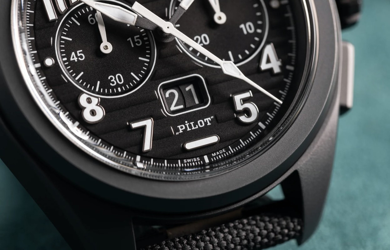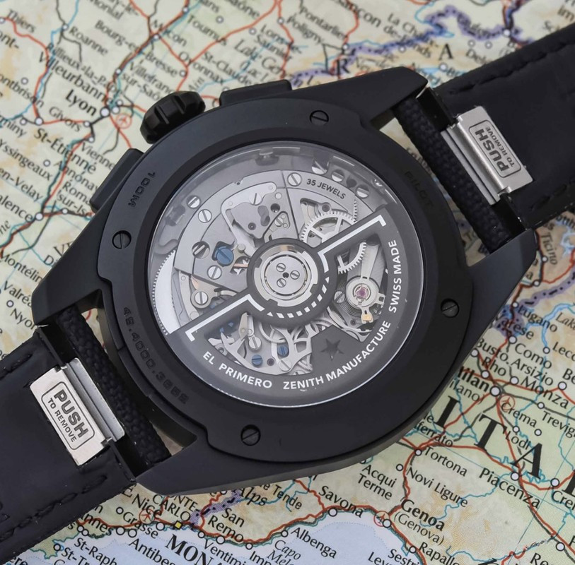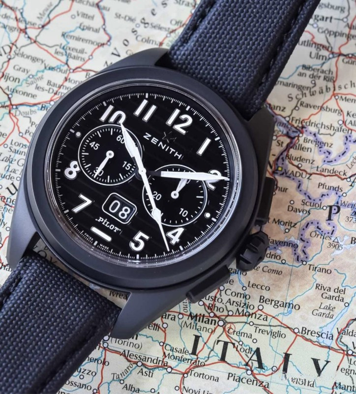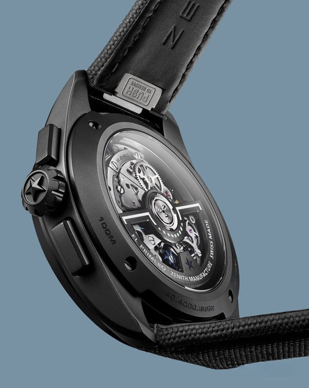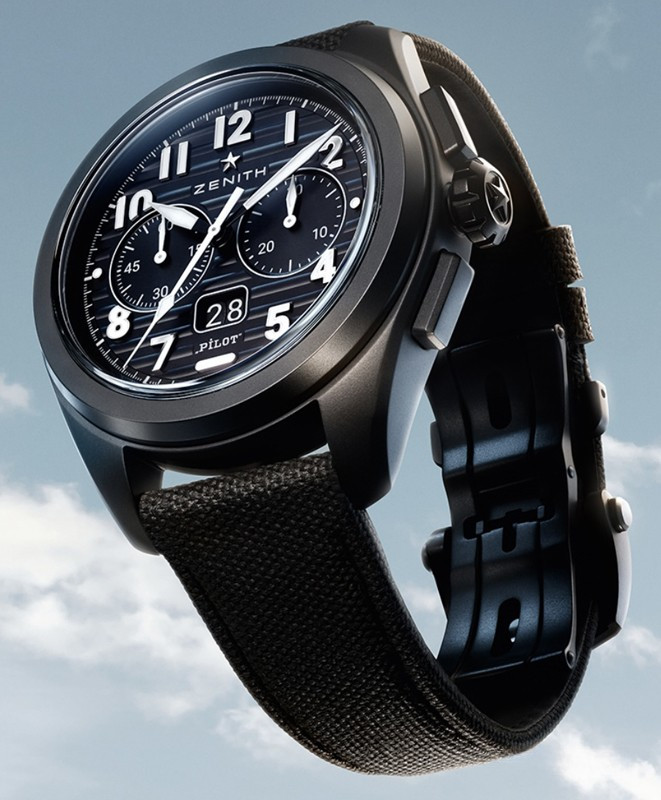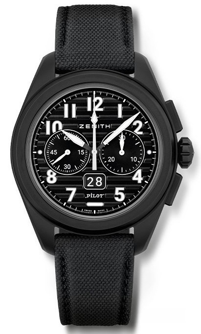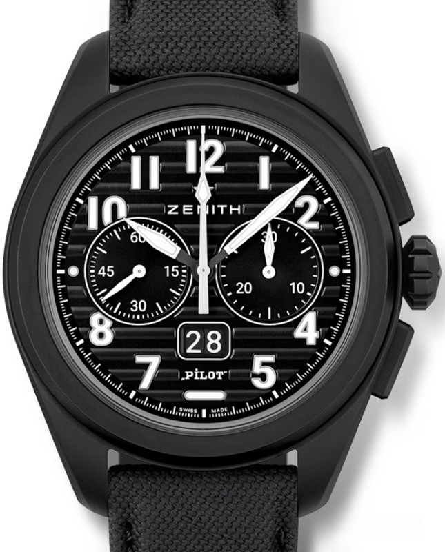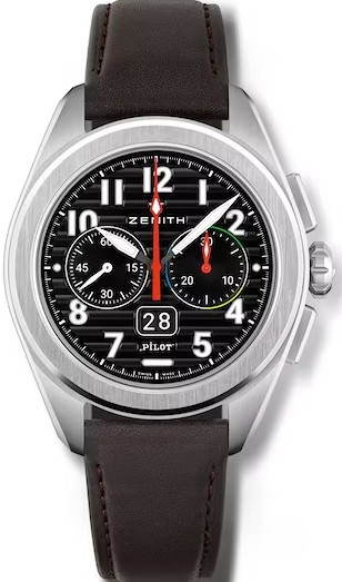 Часы Zenith Pilot Big Date Flyback представлены в корпусе размером 42.5 мм из керамики водонепроницаемостью 100 метров. Внутри корпуса установлен автоматический механизм, Калибр 3652, обладающий запасом хода 60 часов. На черном гильошированном циферблате отображаются часы, минуты, секунды, дата, хронограф. Часы поставляются на текстильном ремешке с застежкой из нержавеющей стали.